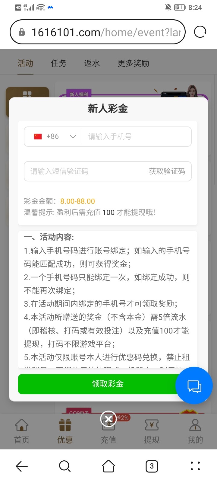特邀碰瓷输入手机号是特邀秒8-88,先绑定手机号在去输入