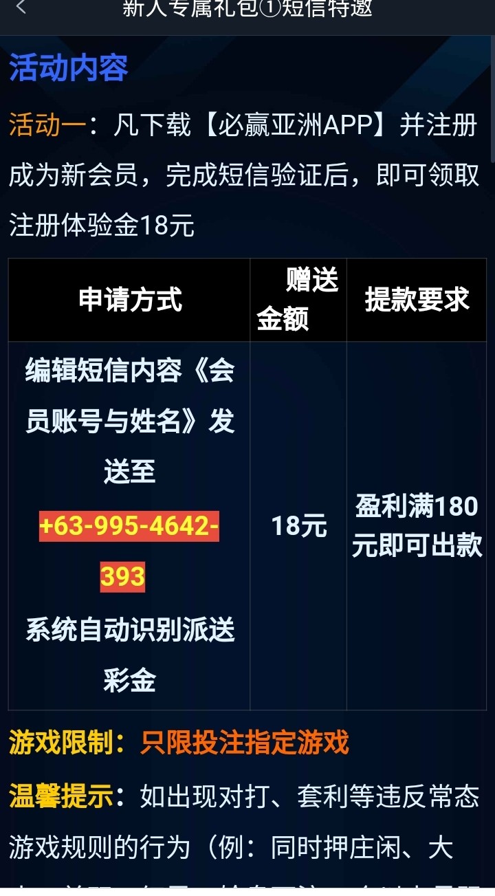 注册发短信秒18,180提