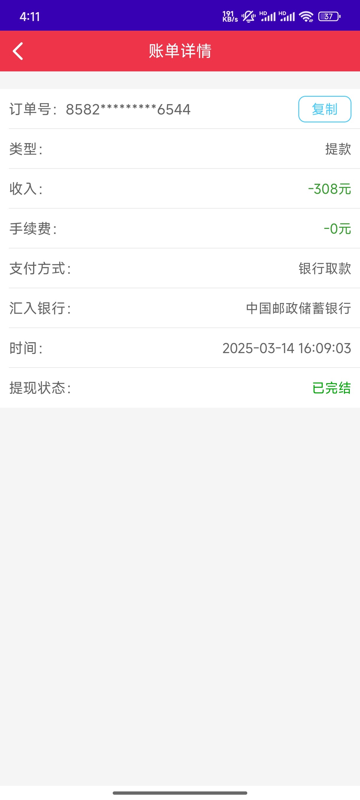 已成功到账