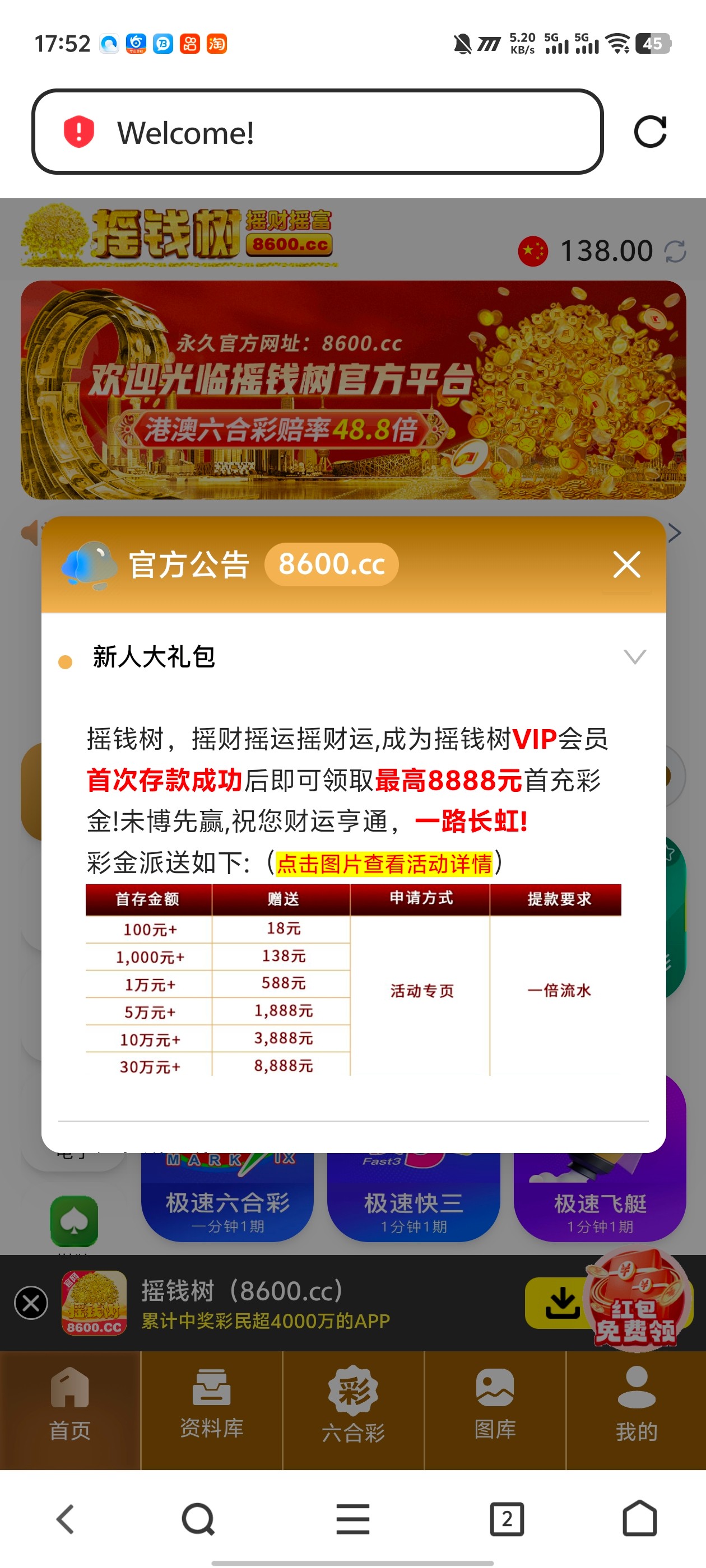 新用户注册好直接点击福利中心领取,部分有把不太知道,去试试吧