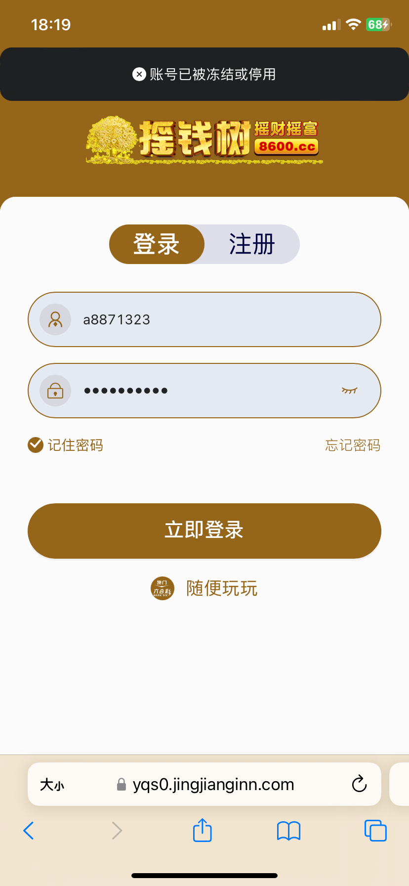 黑了已经,账号已冻结