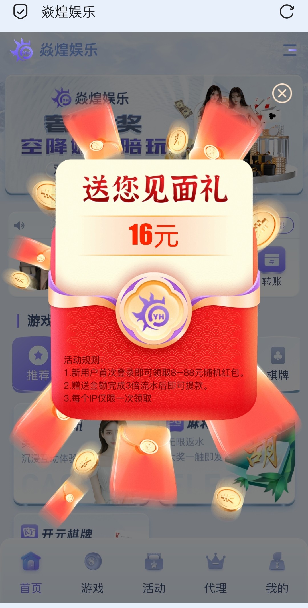 新用户注册等会自动弹彩金红包,说8月28号才开通提款,自测吧