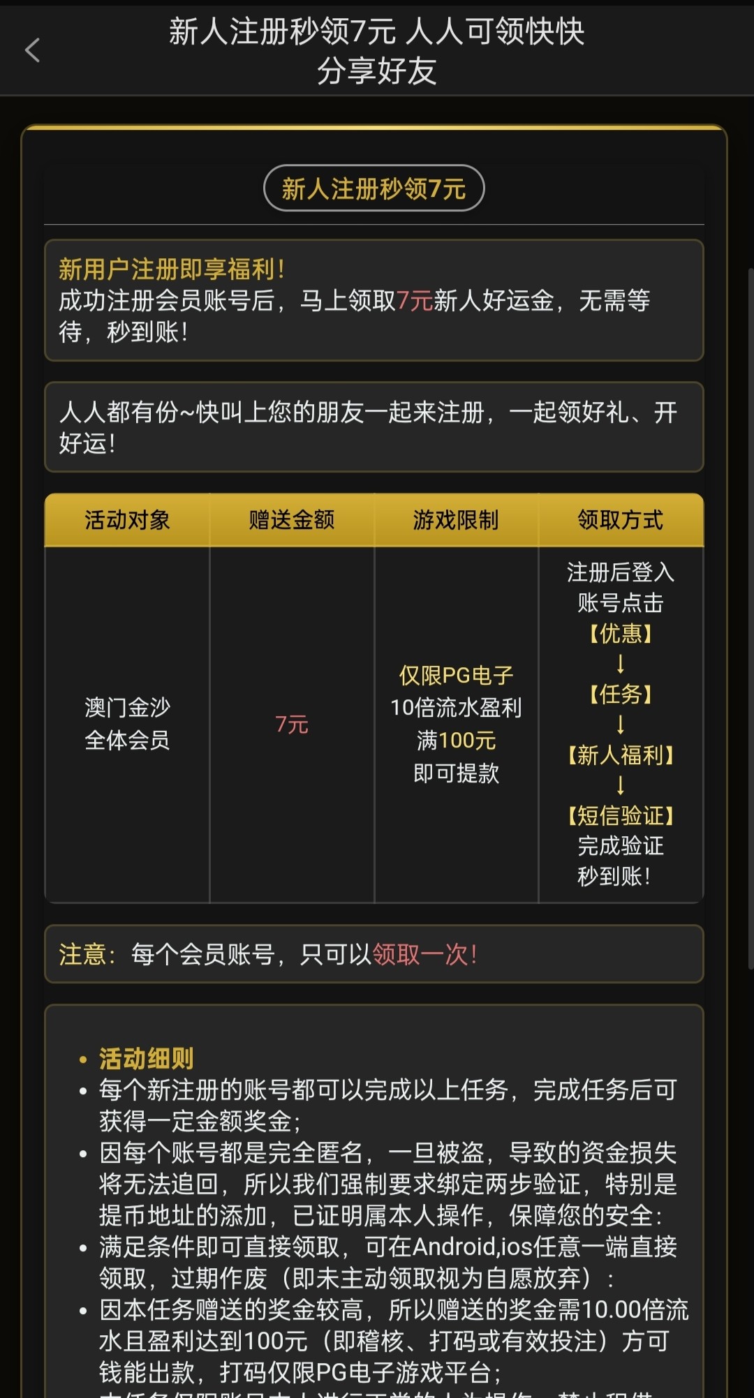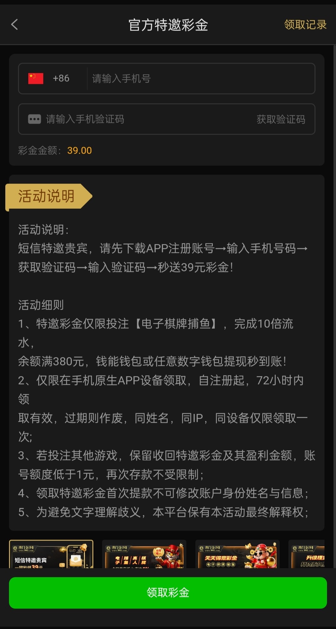 新用户注册特邀验证领取39彩金,不是的去新人那里领取7彩金,具体自测吧
