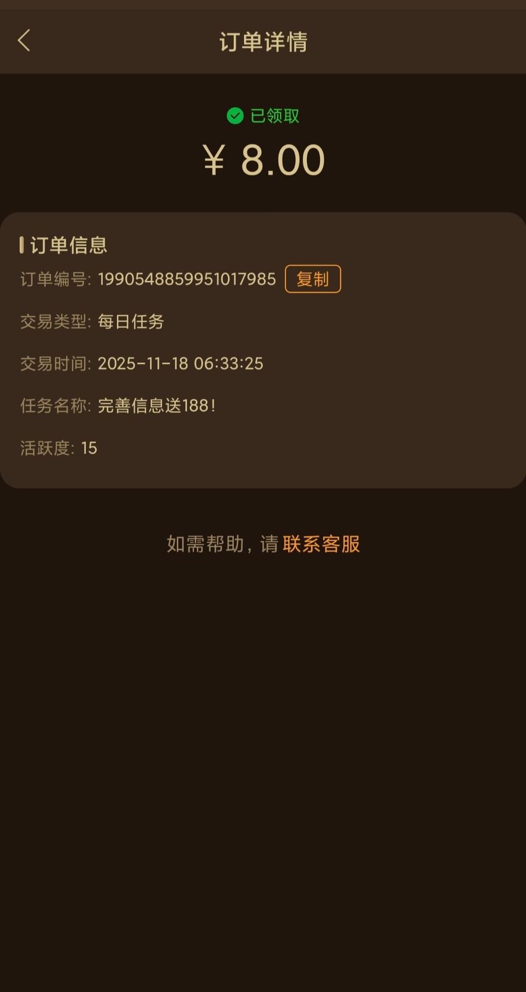 每日任务里面自行领取