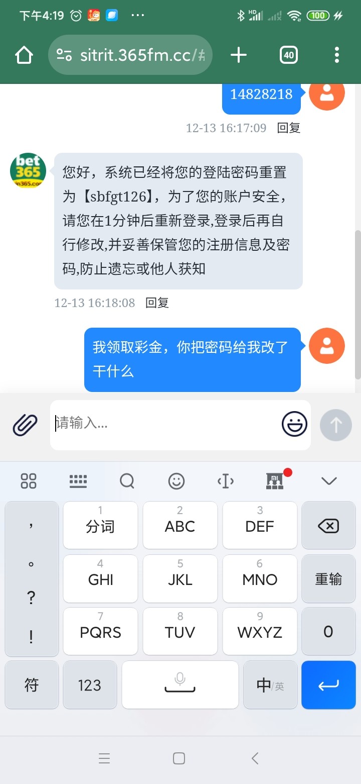 这客服不是脑残吗,我发送Id领取彩金,她直接密码给我改了。