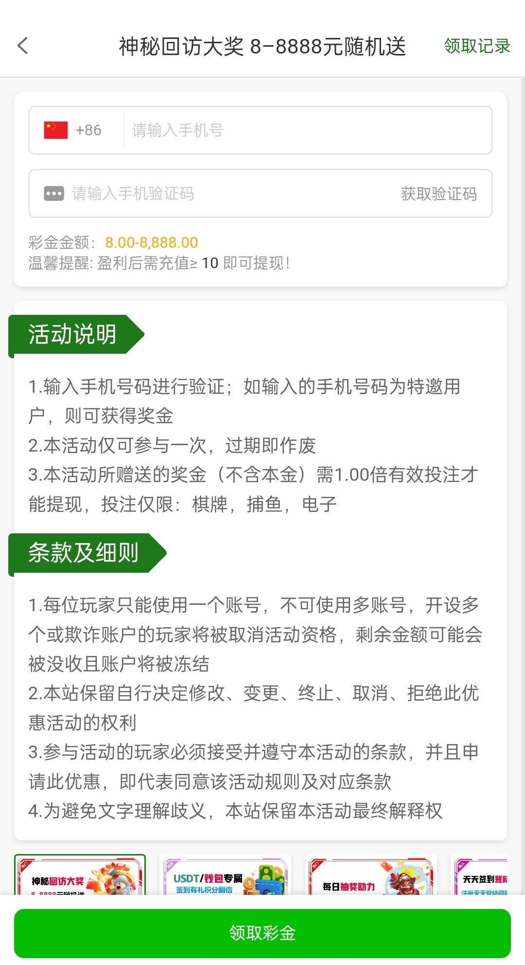 老用户有号登录自助申请这个回访神秘彩金,具体自测