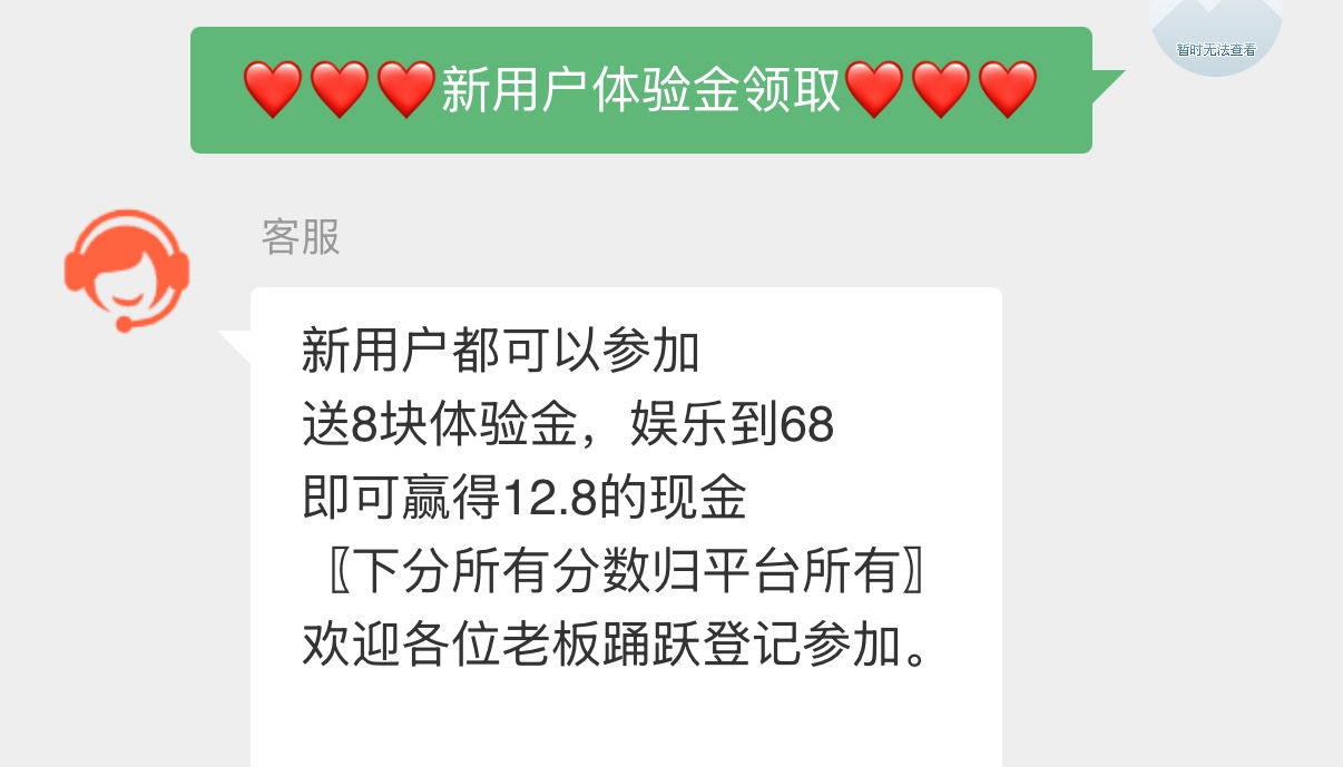 联系在线领取体验金8打上68下12