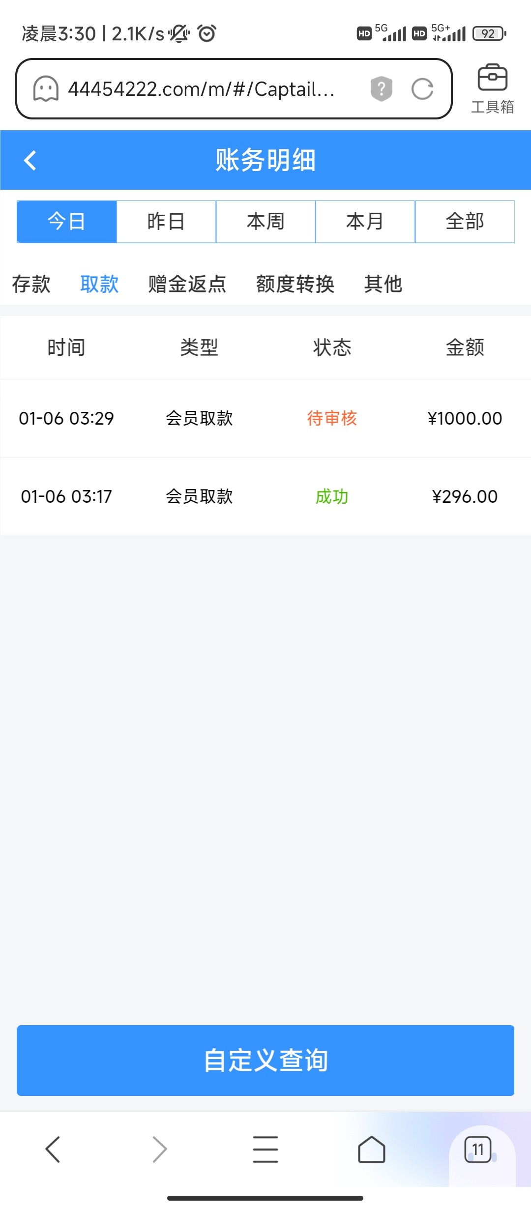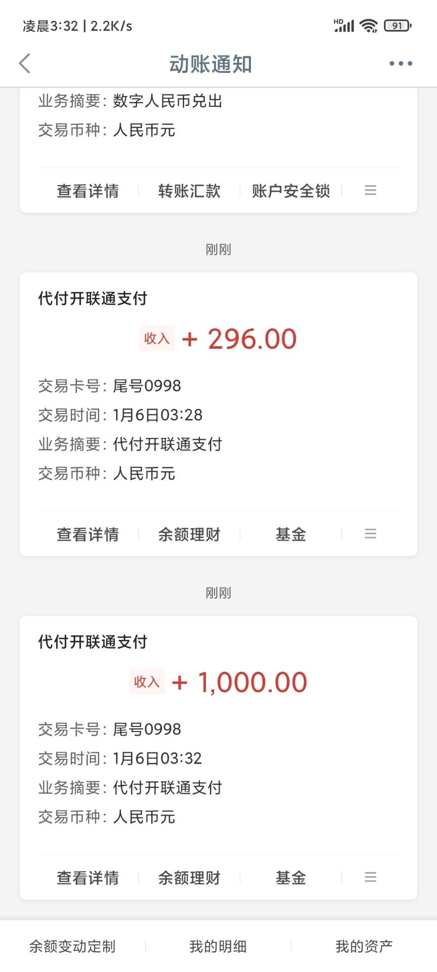 感谢大哥,出款1290,怕黑,所以提的2笔