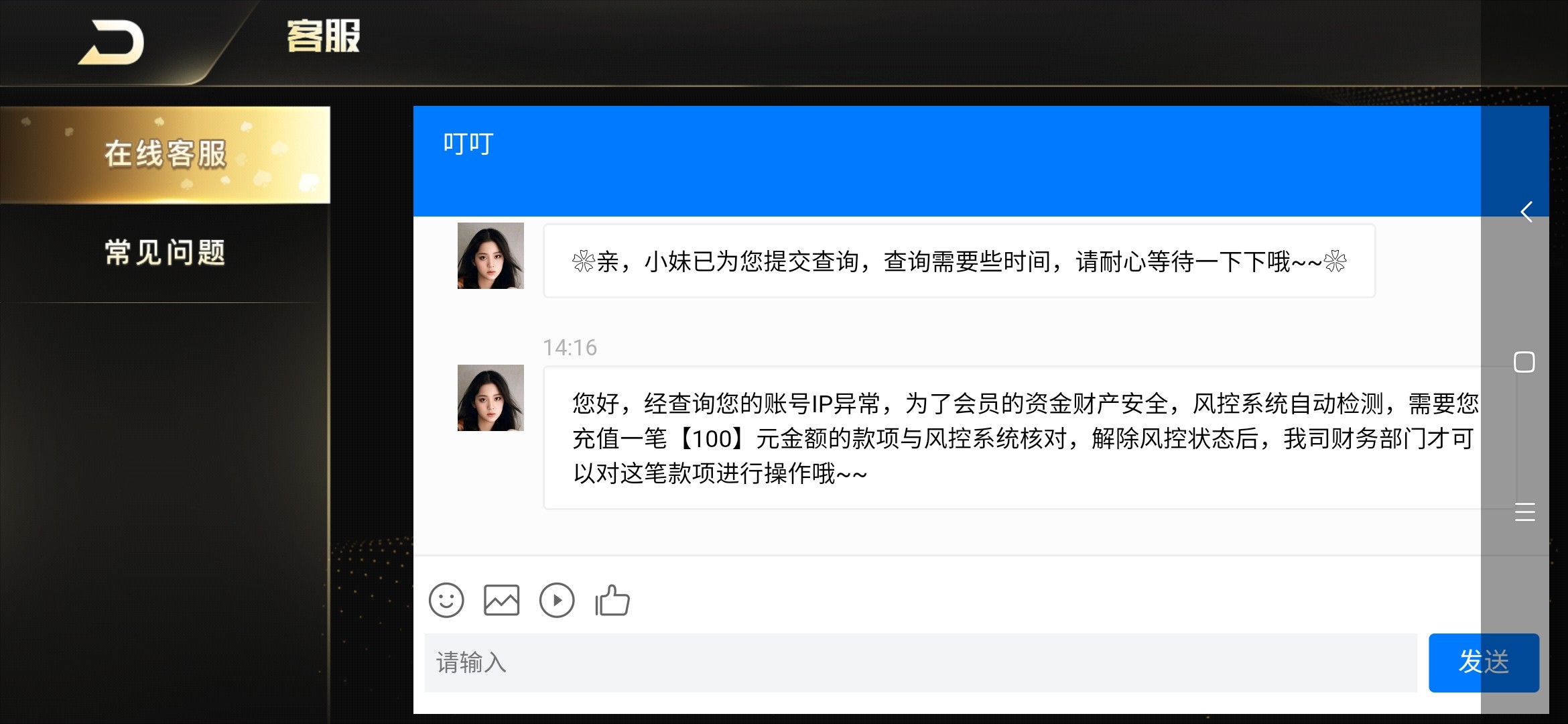 我到账了,刚开始他也让我充值100,我把她骂了一顿,然后过了一个小时就出了,到账了