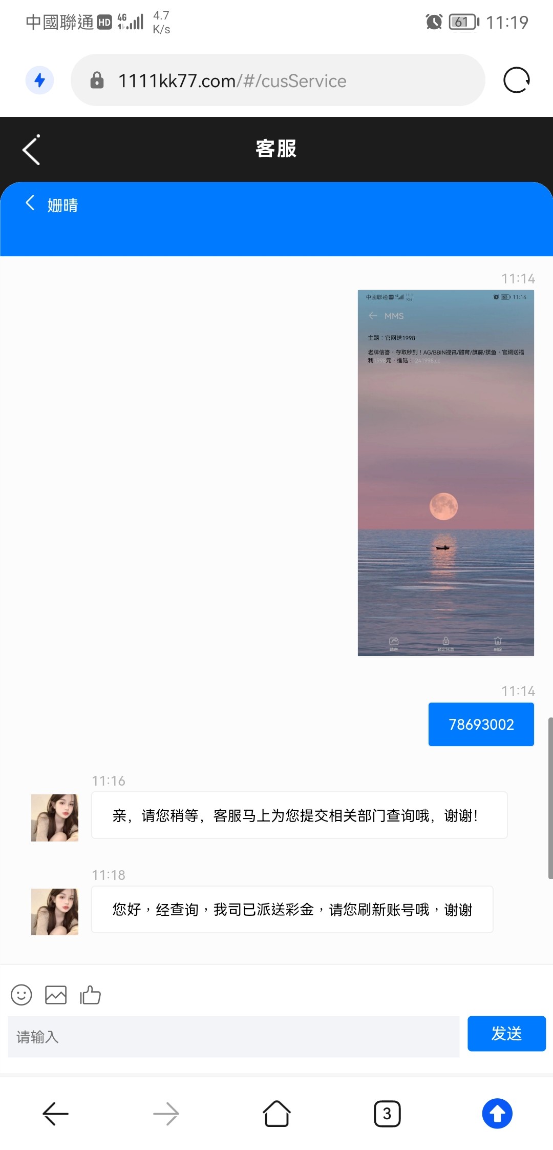 有短信但是客服不送呜呜呜