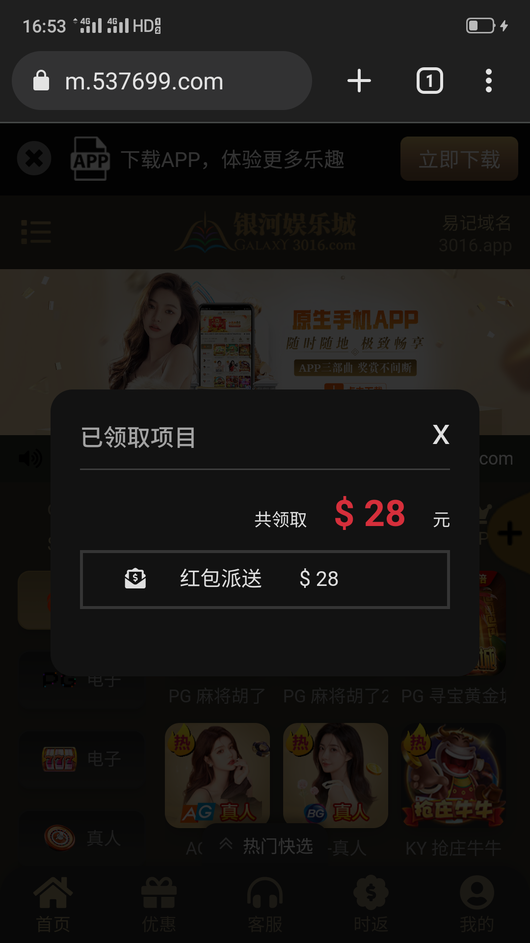 我是真24小时送的    刚随便看看记录登录一看昨天申请的 过了24小时到了28彩金