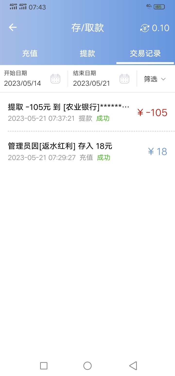 打了20w提105到账