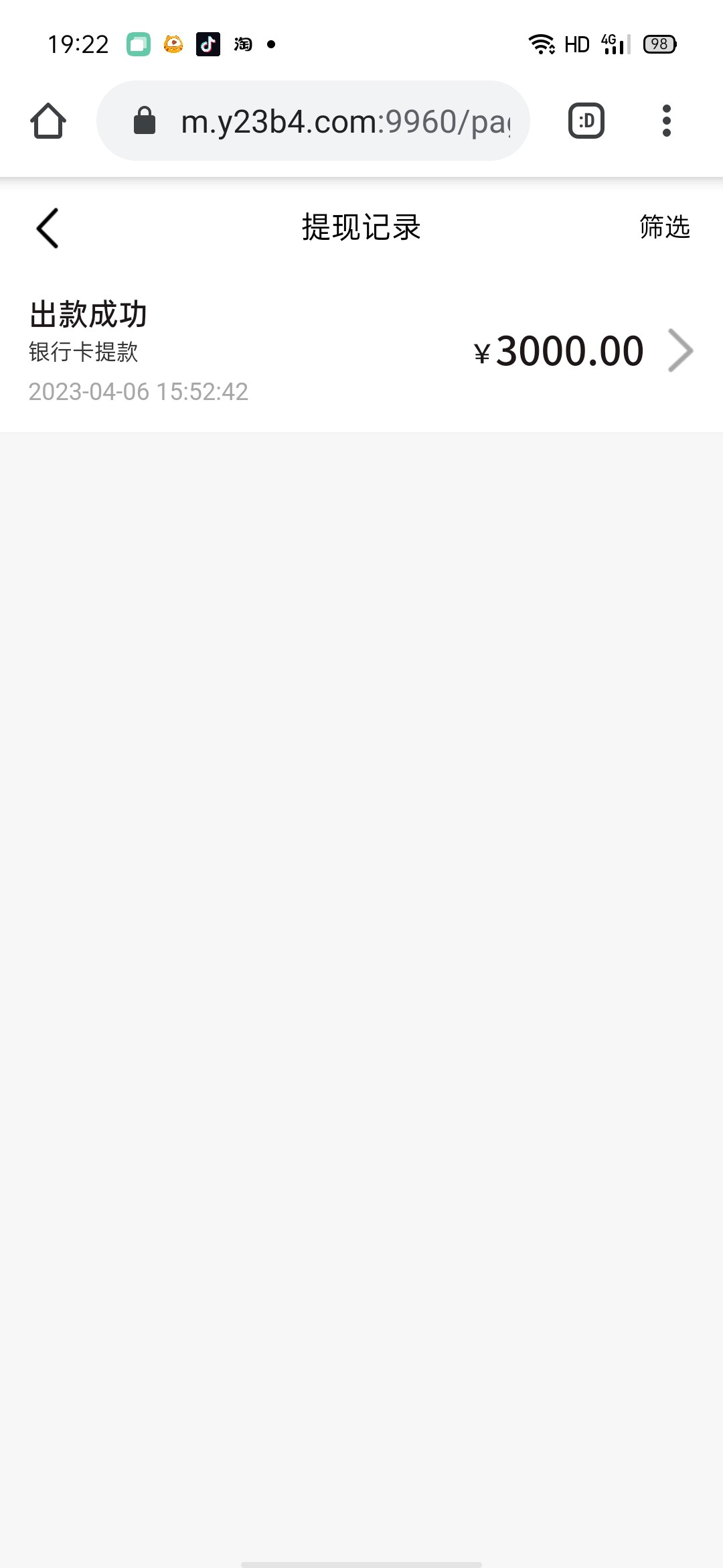 前两个月玩的100+100出了三千成功到账了,玩这种有人黑有人不黑 我今天提3000没准明天就给我黑了,所以不要见个人出款就是托。