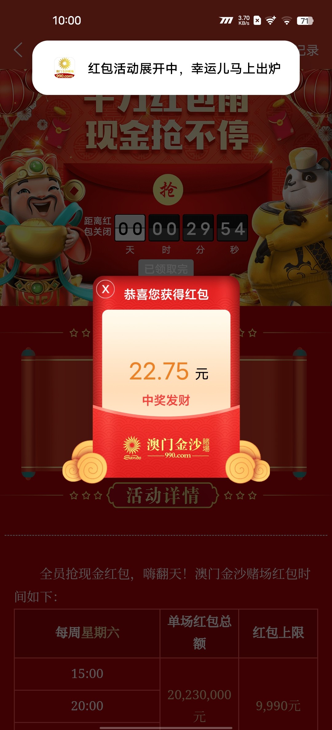 之前送的39出了399 然后今天为了那个红包充10结果不给我红包 我就打到250提了