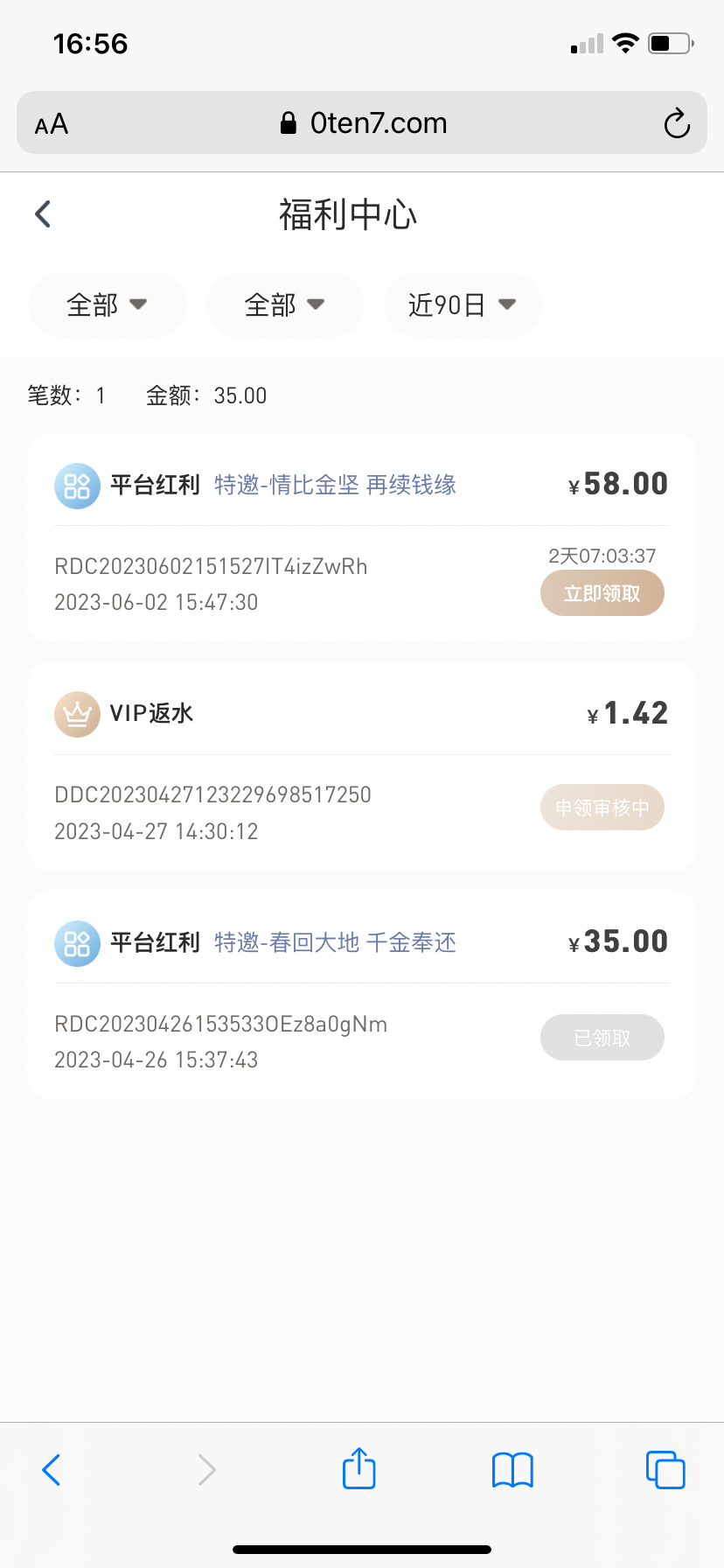 你们还好秒封,妈的这平台玩我,58我打到1000,提1000退回我问客服客服说上限500.我提500又退回说上限300,提300又退回上限提200,200完又上限100,100完就是封号,妈的,耍了我一个下午。