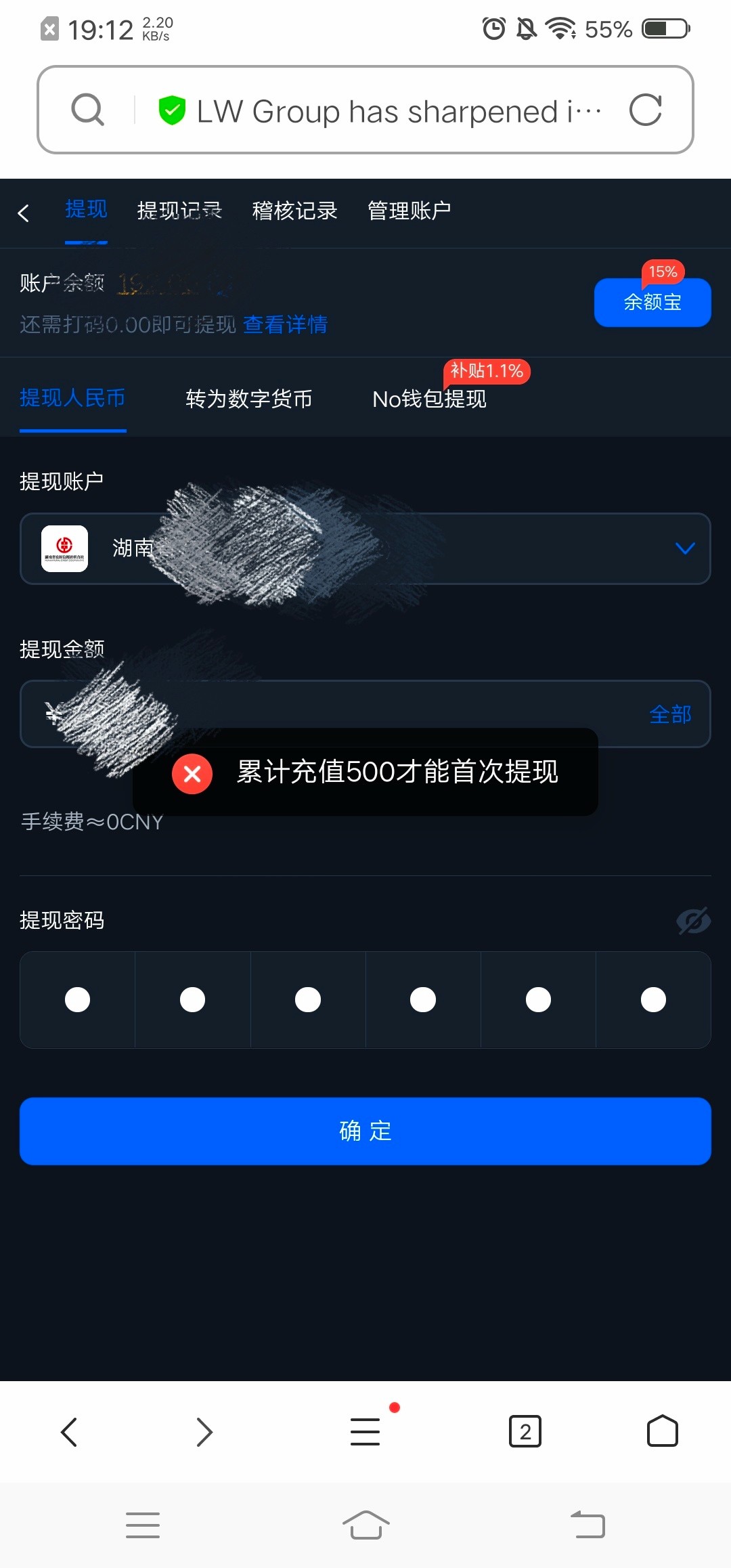 累计充值500才能提现,折腾半天打到200