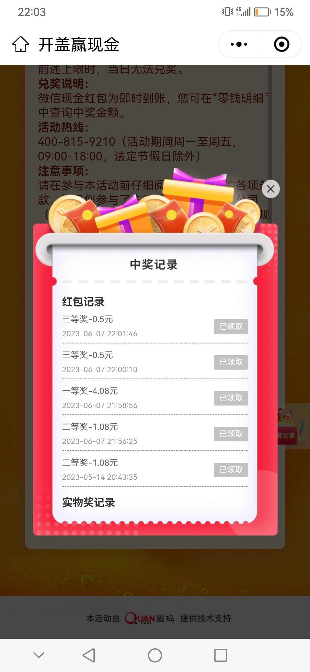 每曰破0中了6块多红包