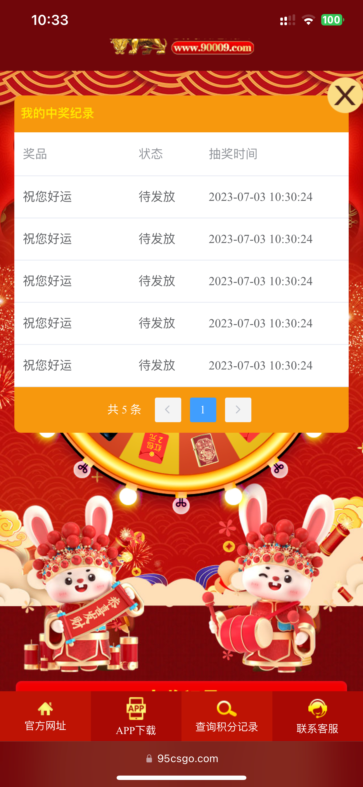 注册找客服领取五次转盘抽奖 我只抽到10 不会放图发的附件