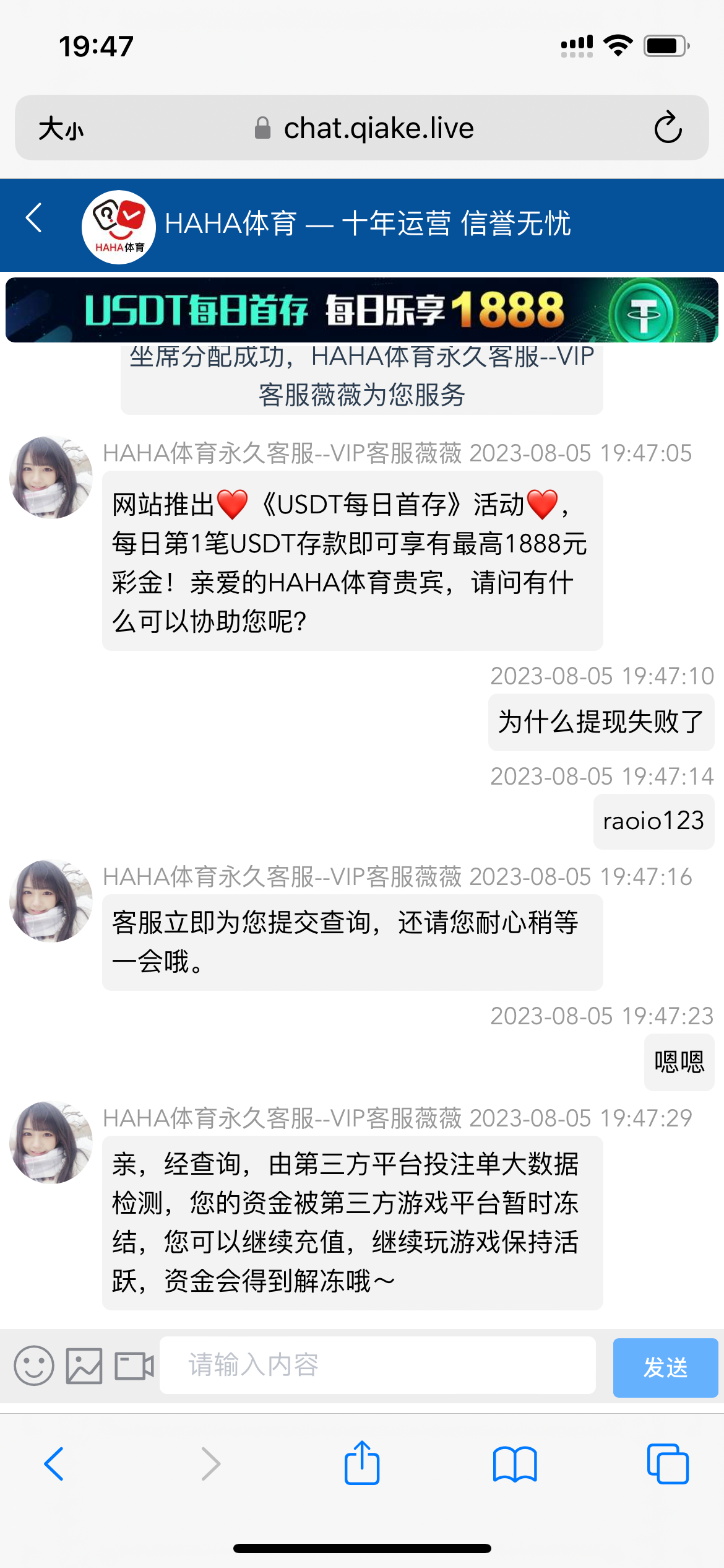 冲了100打到192,不让提现,又冲了100打到500,跟我说被第三方冻结了,连余额都没了,黑台