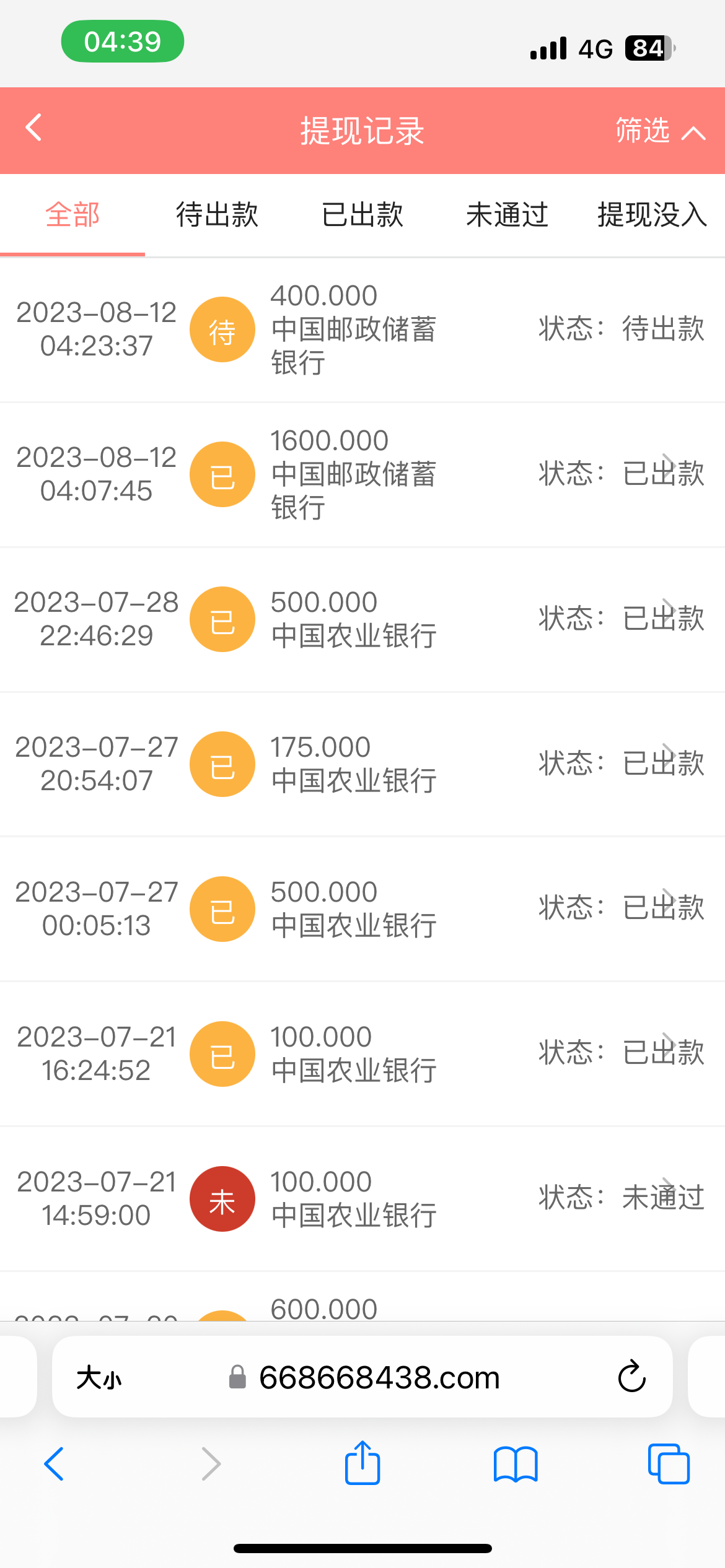 莫殊 1600不是显示已出款吗?
