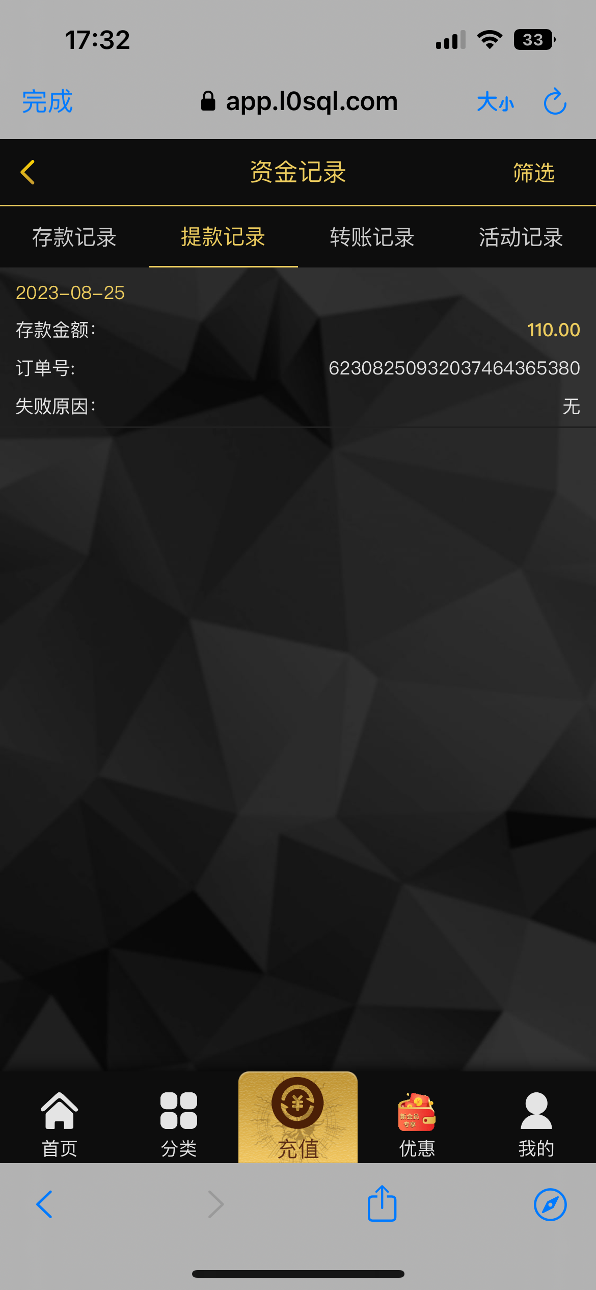 到账情况:提现封号(勿充值)
