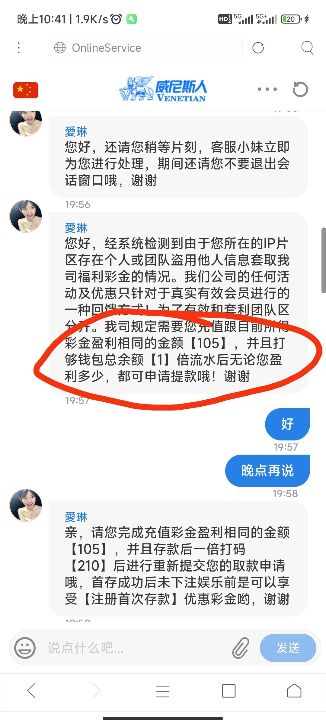 打到105不给提要充100 充了打上1104客服又说签到的钱只可以体现138剩余的全给我扣了666