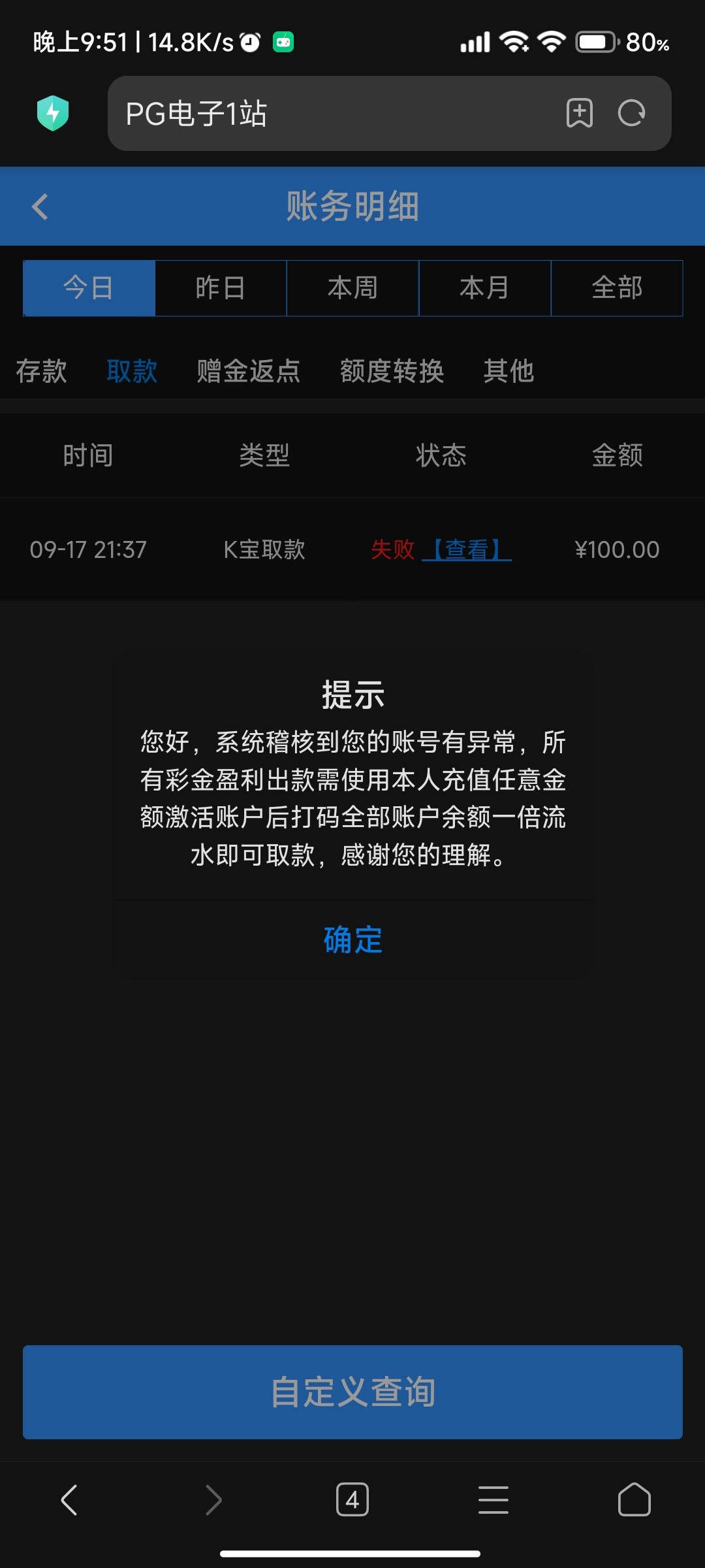 出款情况:半黑