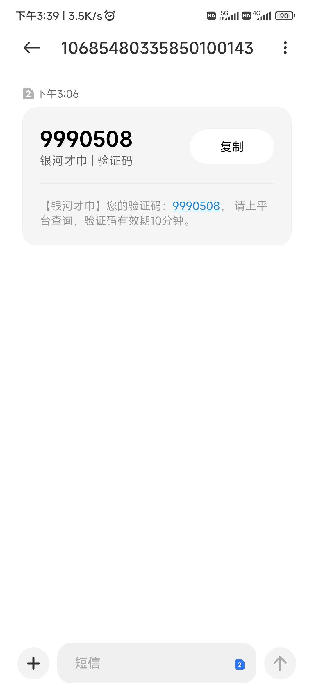 下午收到了 我还想哪来的验证码,我以为垃圾短信。。。。
