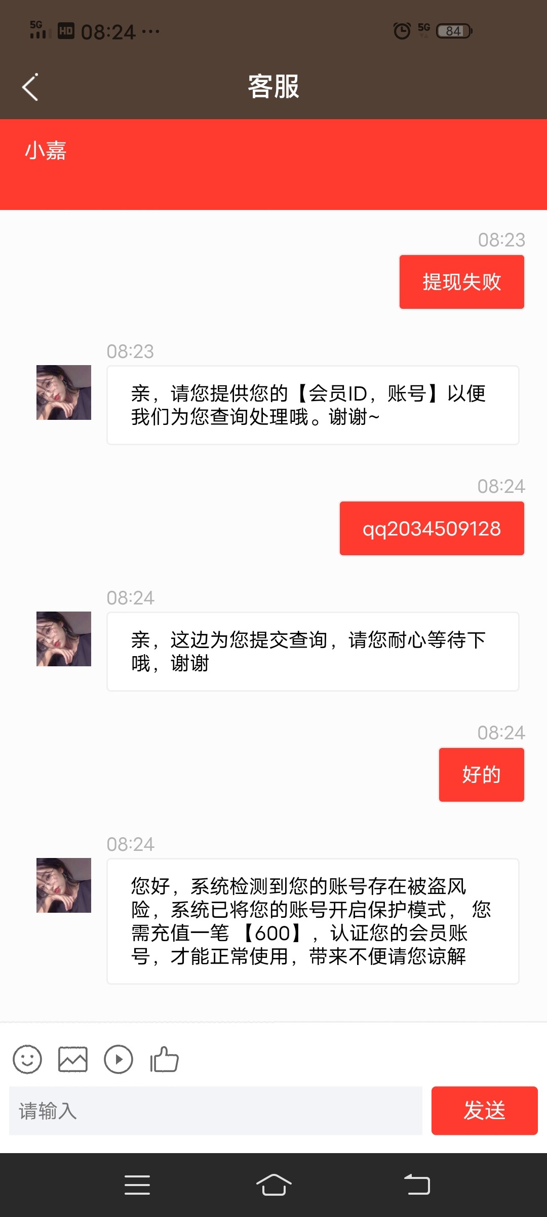 qq123466 100上1k 提现退回让充值600怎么搞