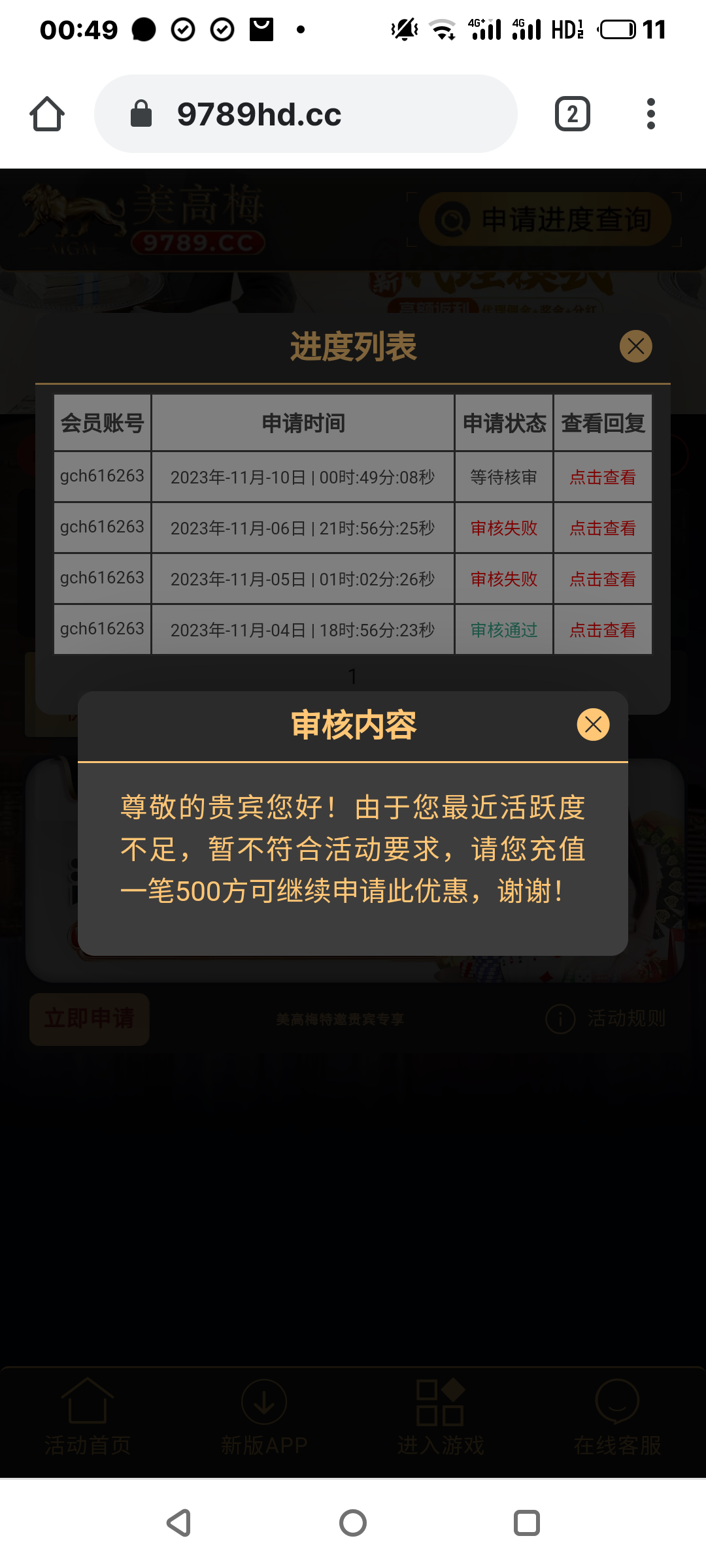 刚有短信 去申请,申请半天不审核 服了