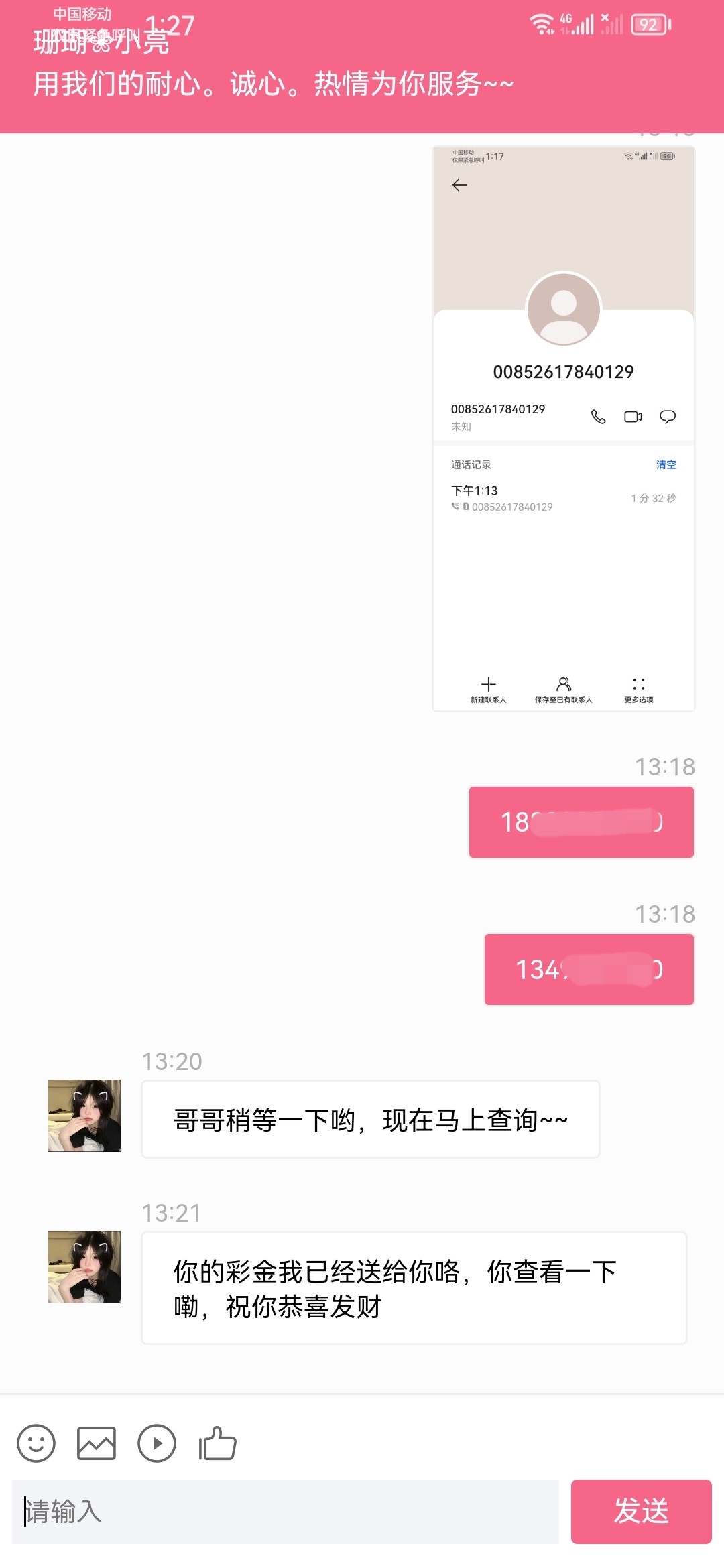 珊瑚直播电话回访彩金,都可以去看一下,随便拿个境外电话截图就可以,碰瓷 没有别喷
