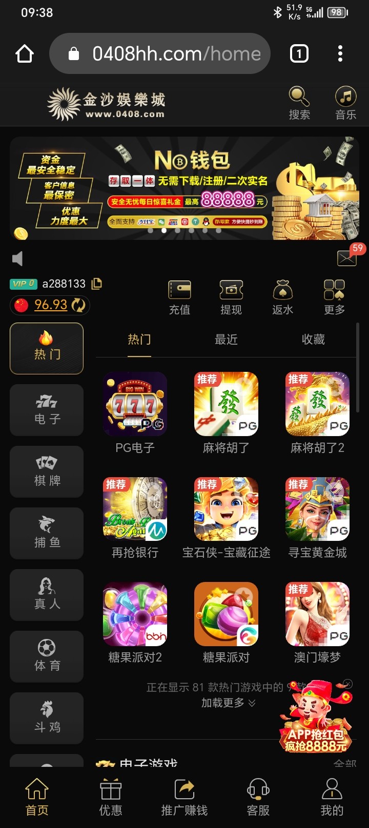 36878.cc从这个网站注册 然后设置取款密码 设置难一点 不然不会送 注册之后新用户找客服跟他说领电话480彩金 每天18点送24 限制电子棋牌捕鱼 最低200提款 撸过的别叫 客服有点贱 自行选择时间去找客服