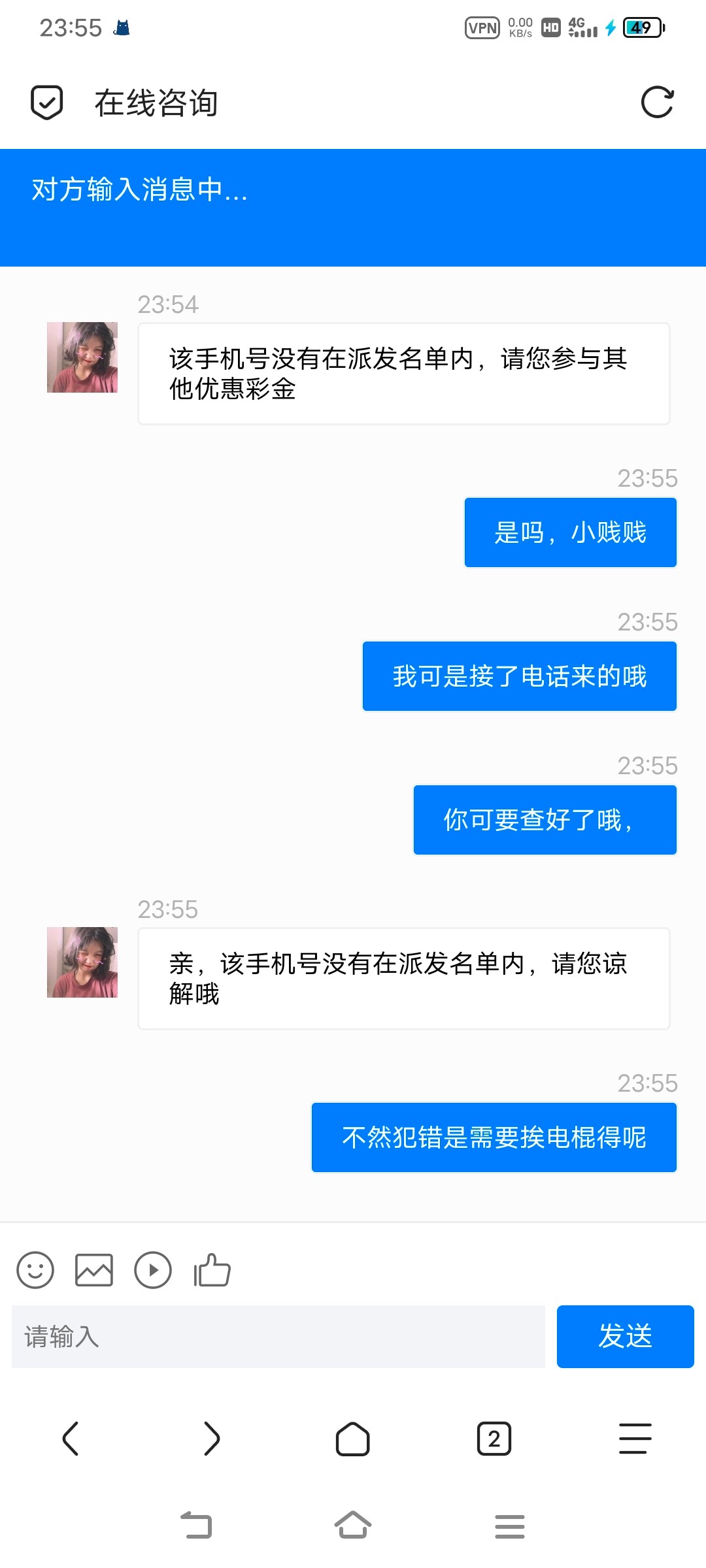 和他说了半天直接把聊天界面关了,我操他妈。