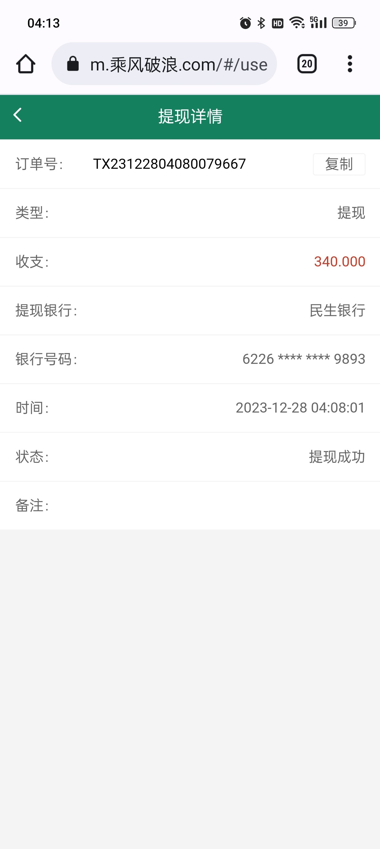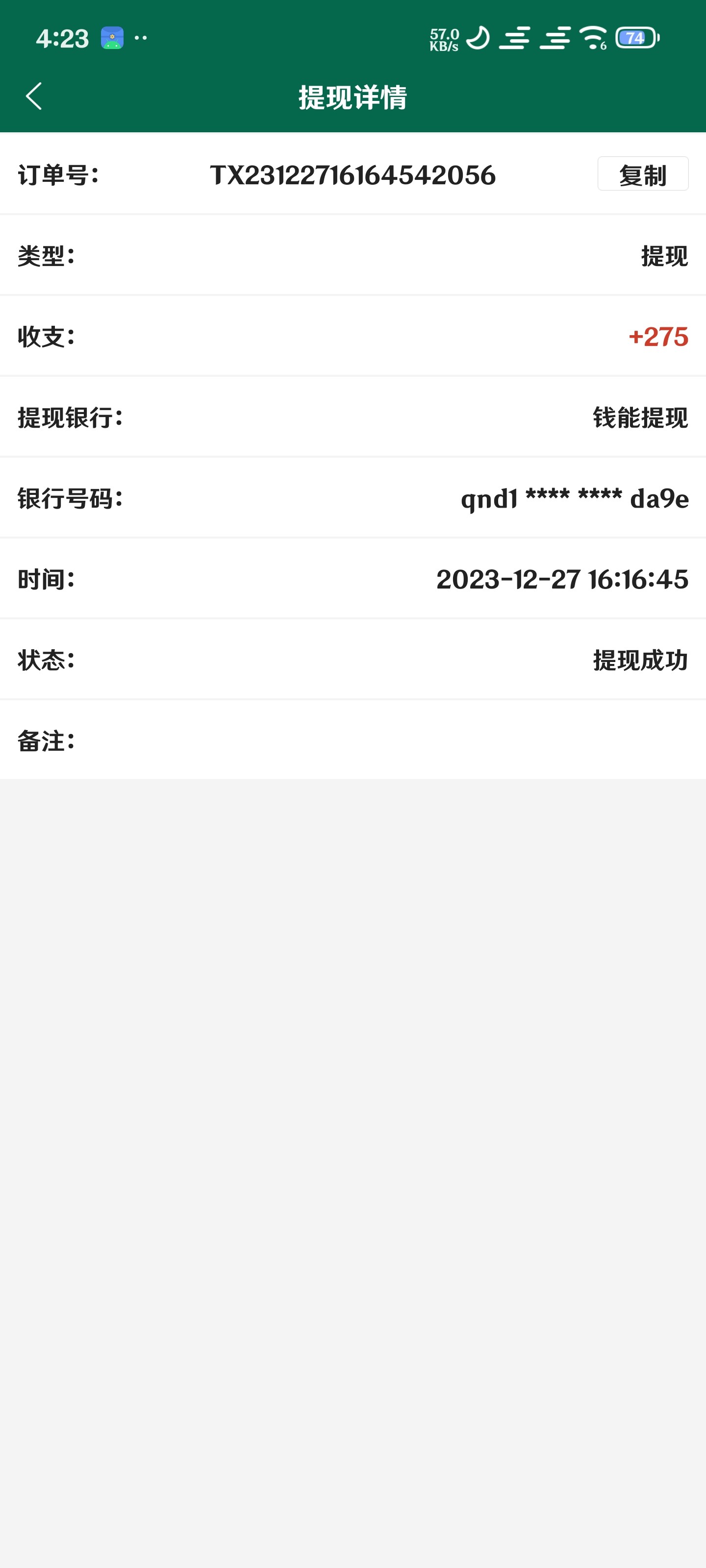提现成功不知道会不会到账