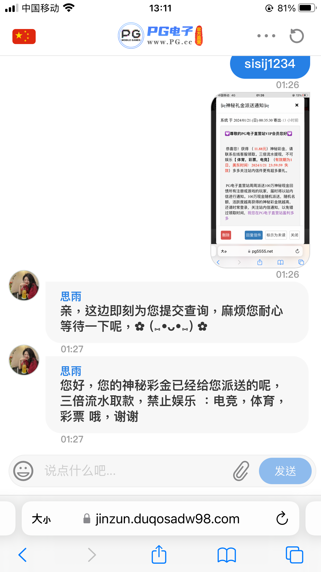 前面几天也是这个上面发的 送40我撸了两千五出来 然后反手去南宫10分钟输光了 tm的