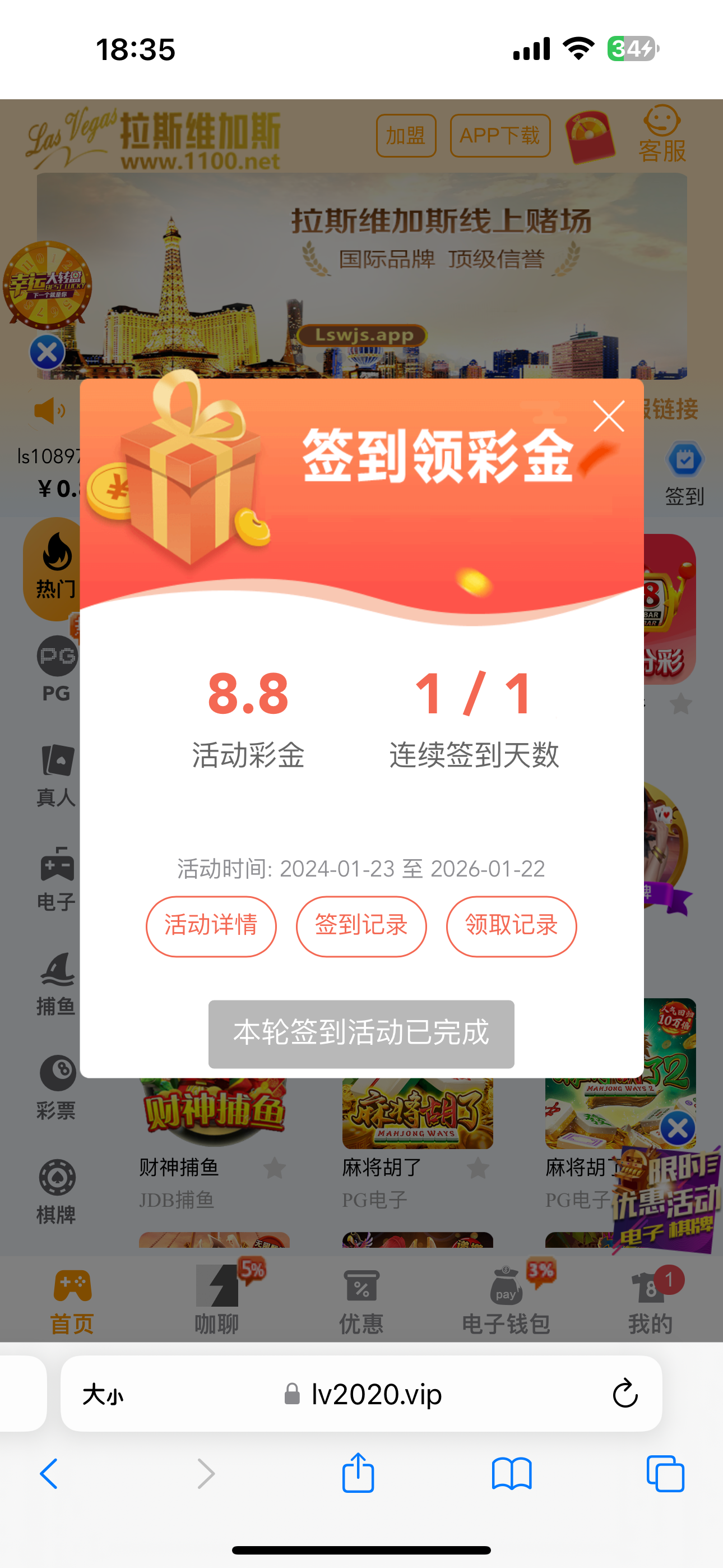 拉斯签到去领取彩金
