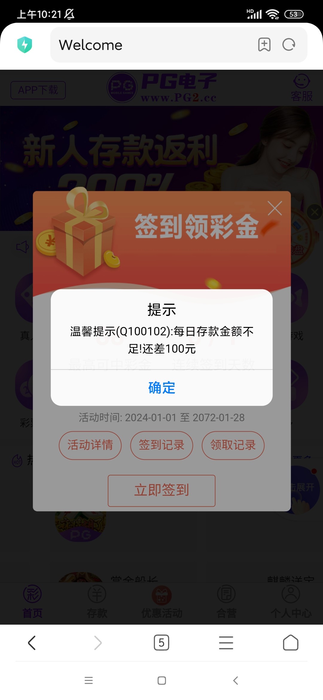 注册要充值100才能签到