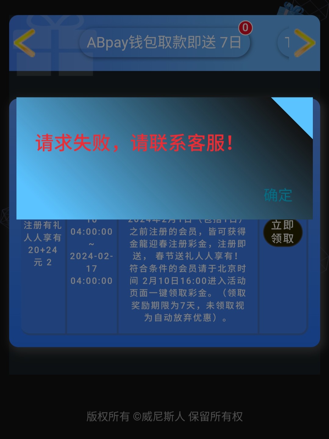 领取一直转圈圈后面就提示这个。