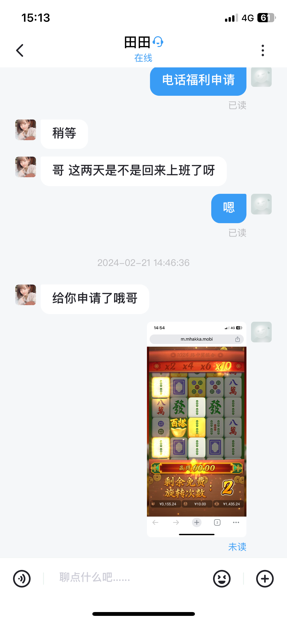 这个月是第2次打电话来送彩金了基本每个月都打1-2次电话送回访彩金这次直接白嫖5.1k