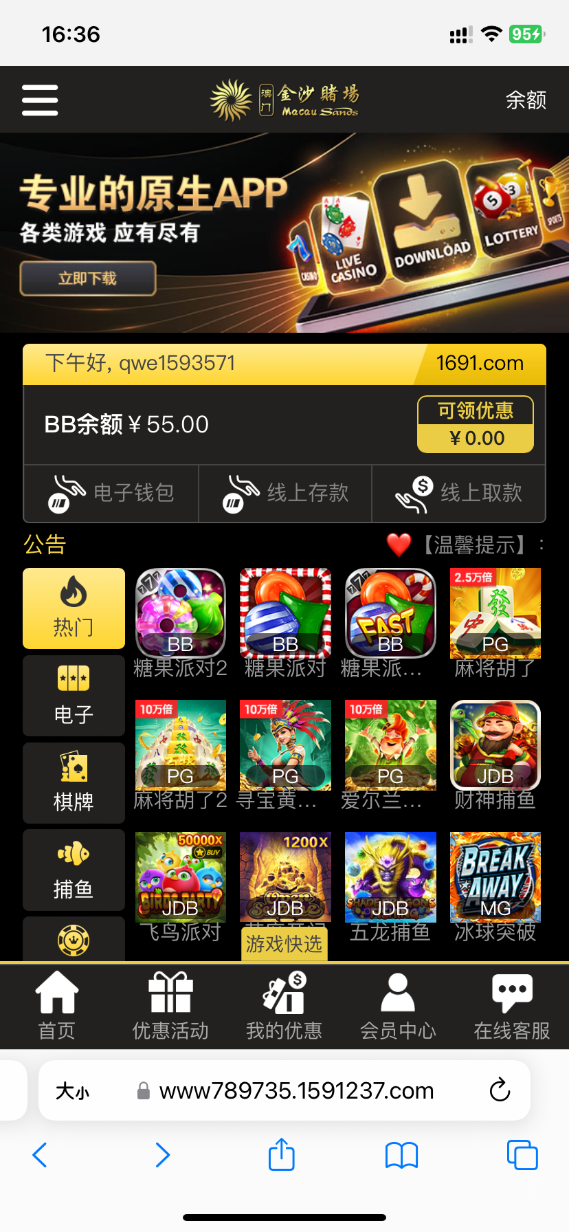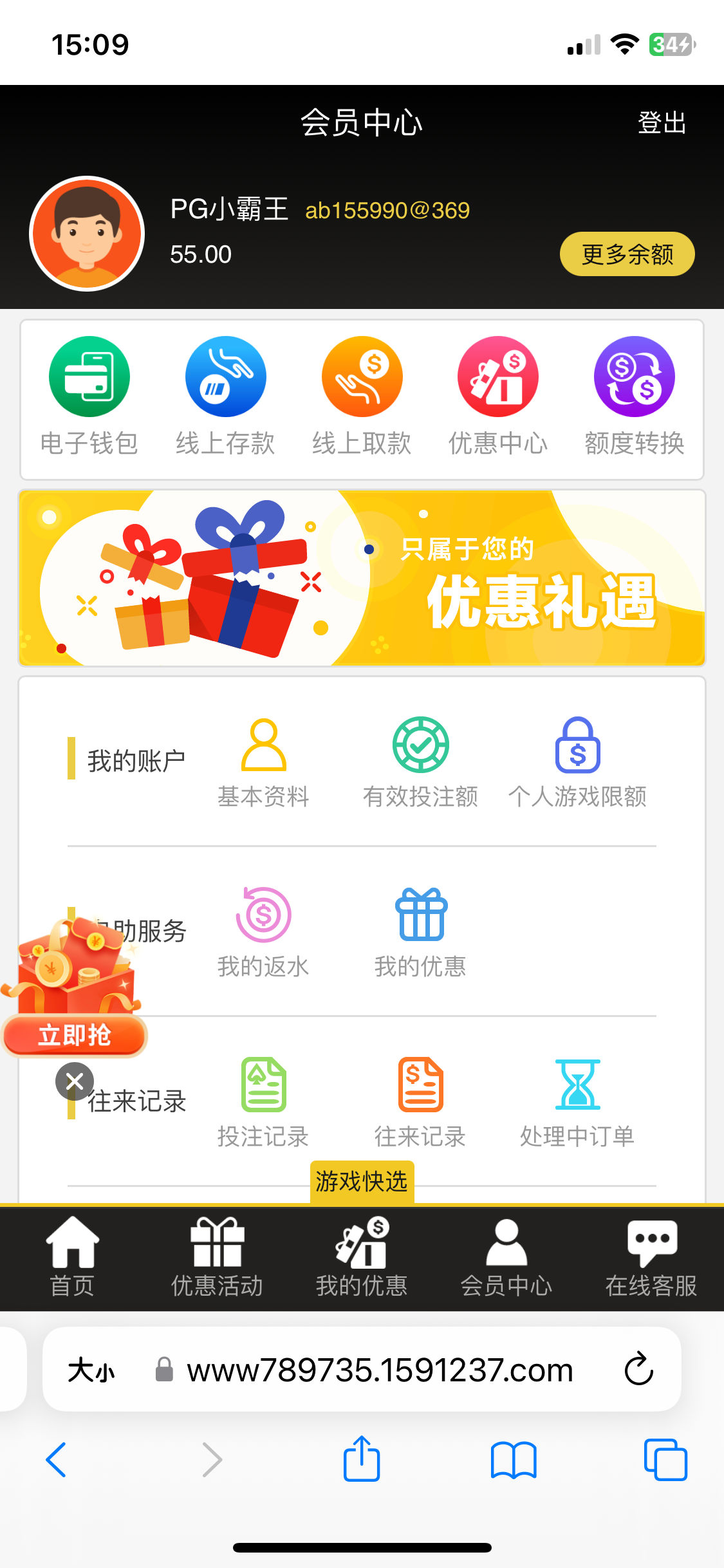 看看有没有下放短信有的注册绑定发短信秒55彩金,没有可以去注册碰瓷试试吧,具体自测切记勿充值
