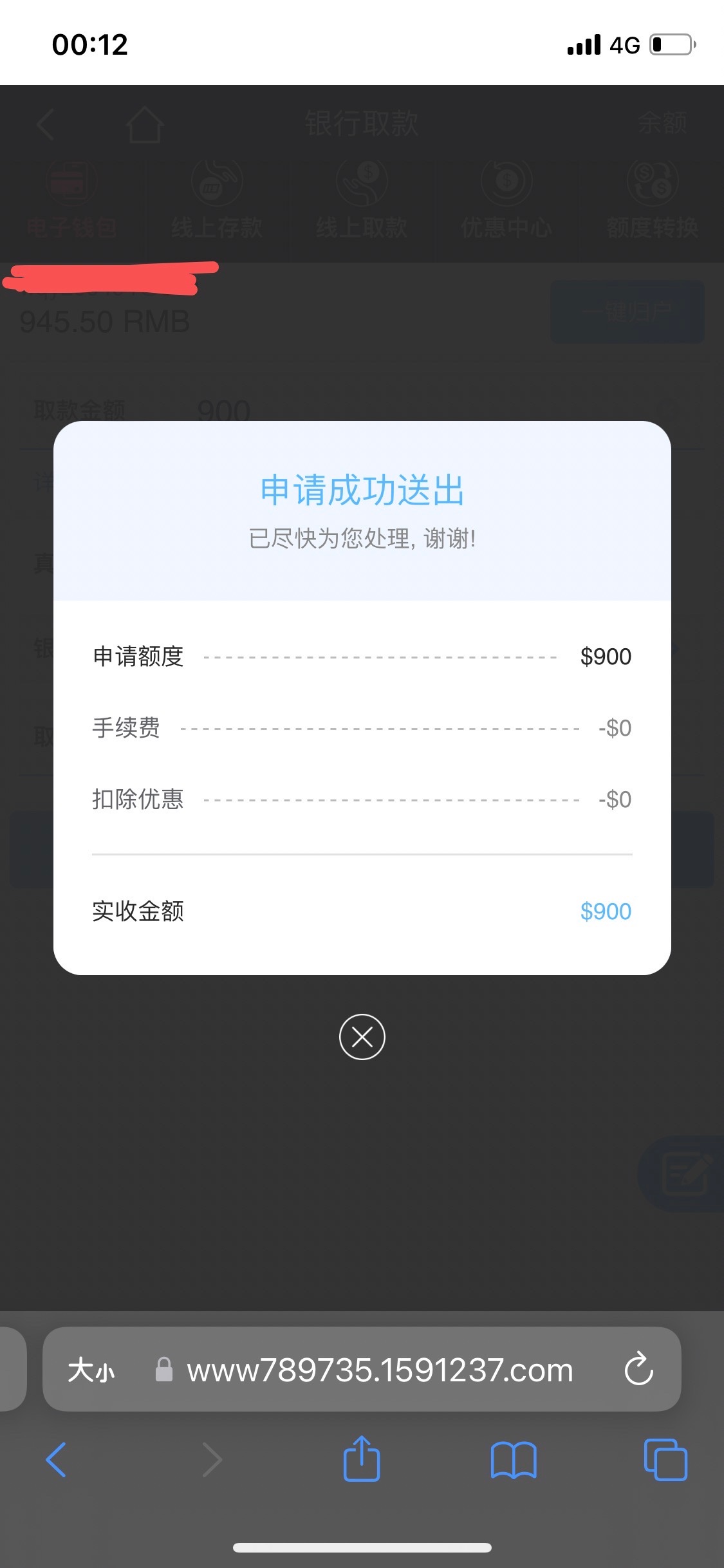 900到账
