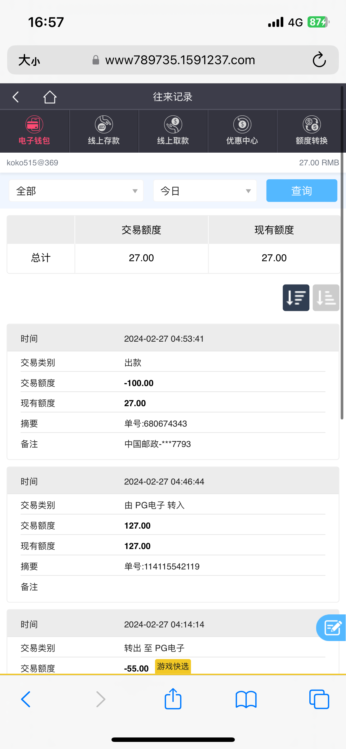 领了55 然后挂了 有小水 上上下下的就是不到百 然后打了800多流水 返水还是打不上去