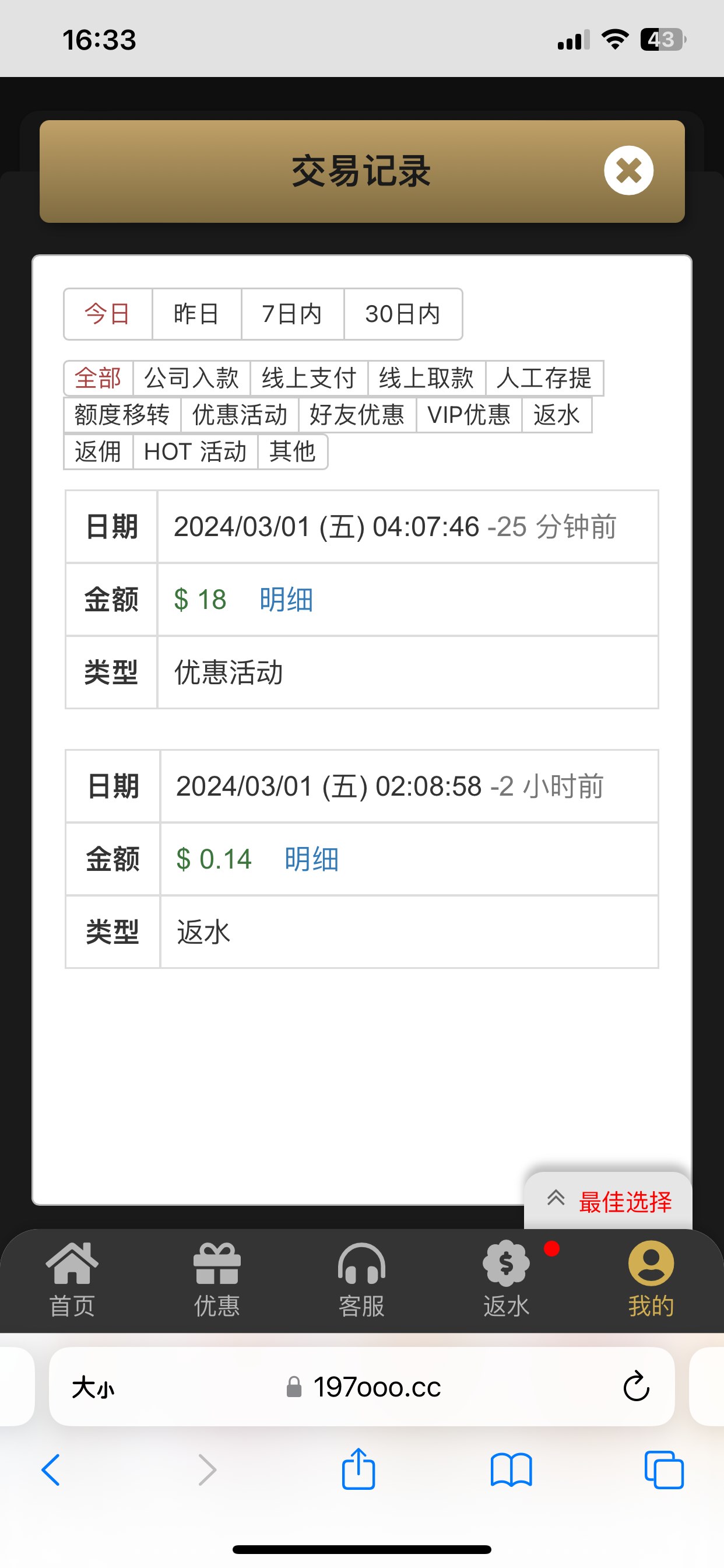 必赢送米应该是充值过才有我没打出来朋友出三百网址图上自己看