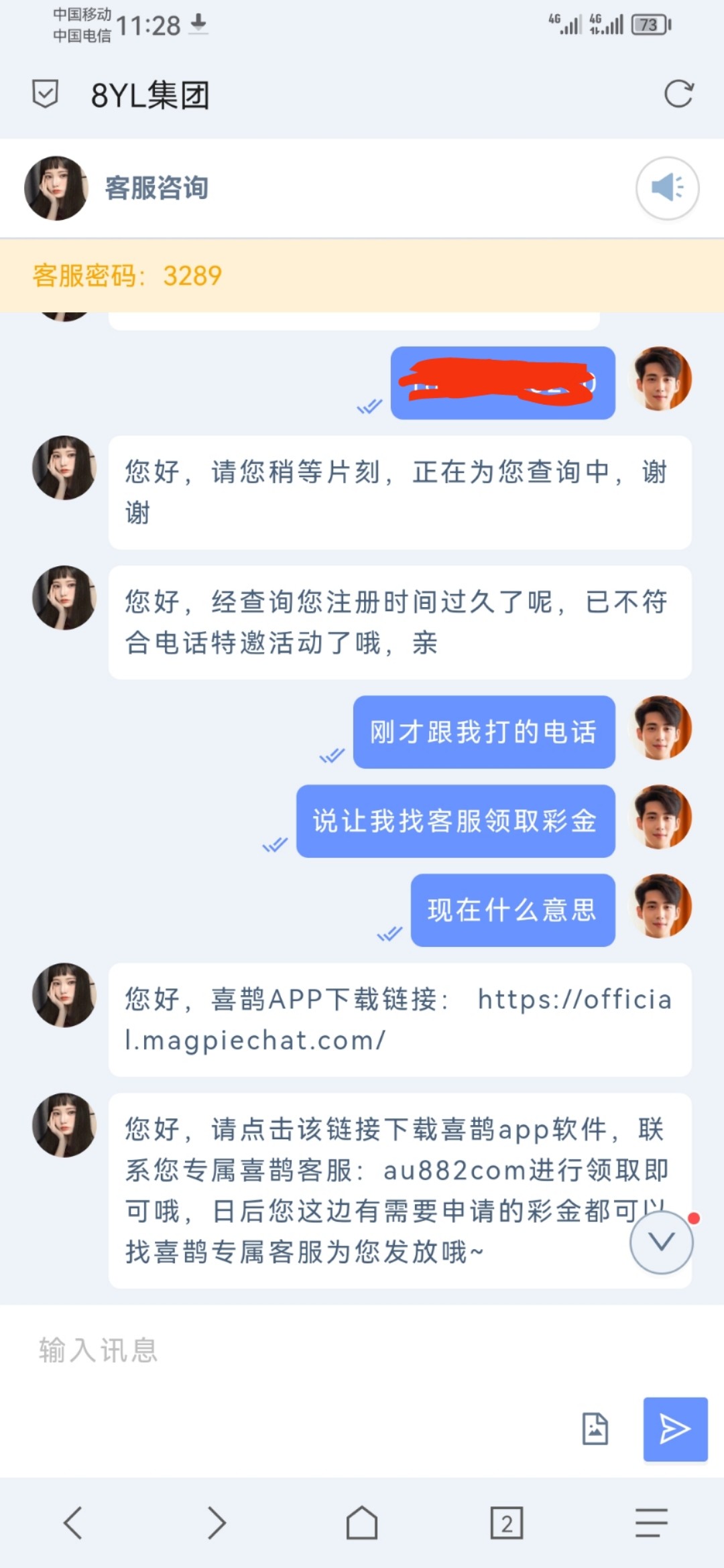跟客服说领取回访彩金