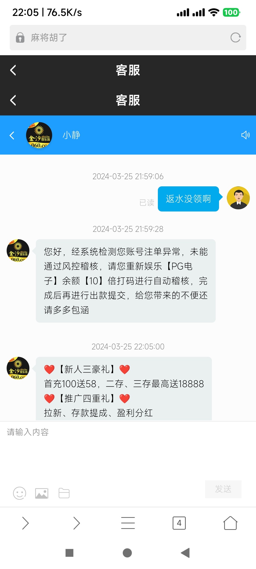 还好吧 提现到了 赢了77块钱 当时我看参加特邀 100➕58 直接送 结果喊先玩 我玩了那个麻将1是假的 爆了60 160又继续玩麻将1 输的还有110 我知道他在吃分了 好多pg都是假的 又去玩jdb那个冰火女王那个 来个免费爆了11块钱 后面输的还有五十 我去玩cq9打直视发彩神 直接闪退出来了 不知道咋回事 后面53我就去玩jdb聚宝盆 进去就一块钱转 一直给 100想保本提了 后面不甘心 继续打 来个免费 刚好170我就跑了 提现现实失败 我跑去问客服 我还以为是个黑平台 不退回 后面到账了 就是这个平台有点辣鸡 pg都是假的 可以玩 大额我就不知道黑不黑了 我提的卡 那个假麻将一直给分 后面就不给了 现在又送了58彩金 我先去玩了 结果他说不用管 后面j
