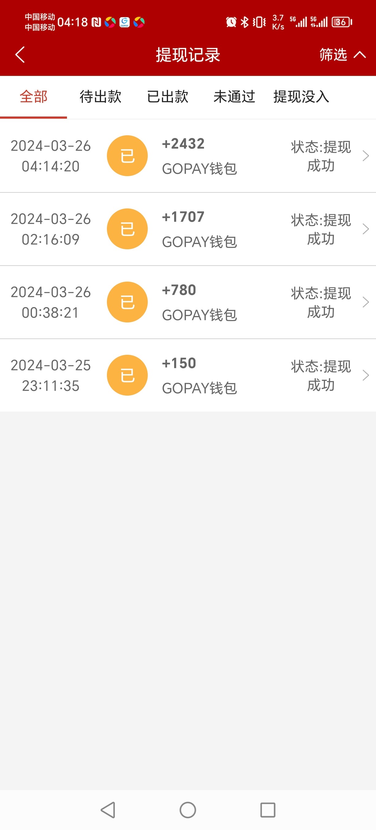 显示提现成功 还没到