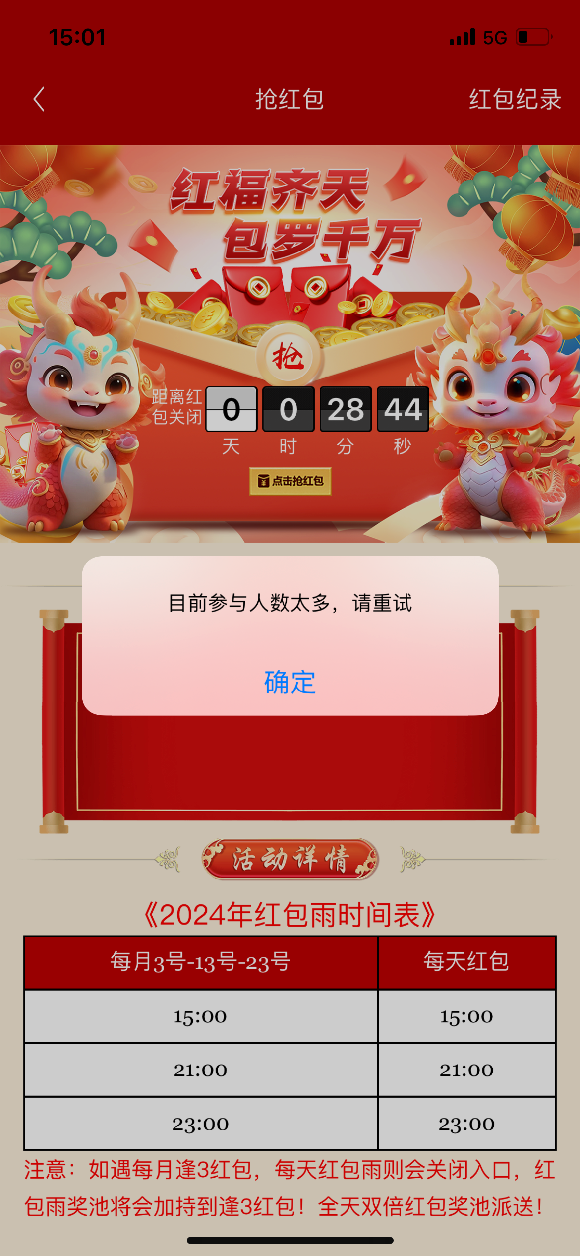 y198278 卡死了,抢个红包显示人数过多30分钟都是这样