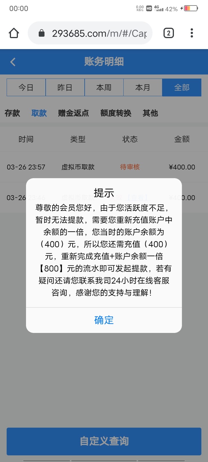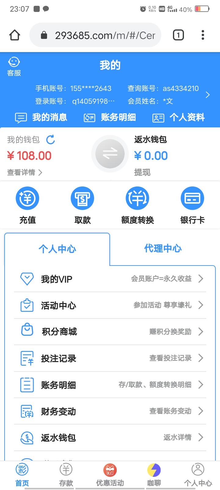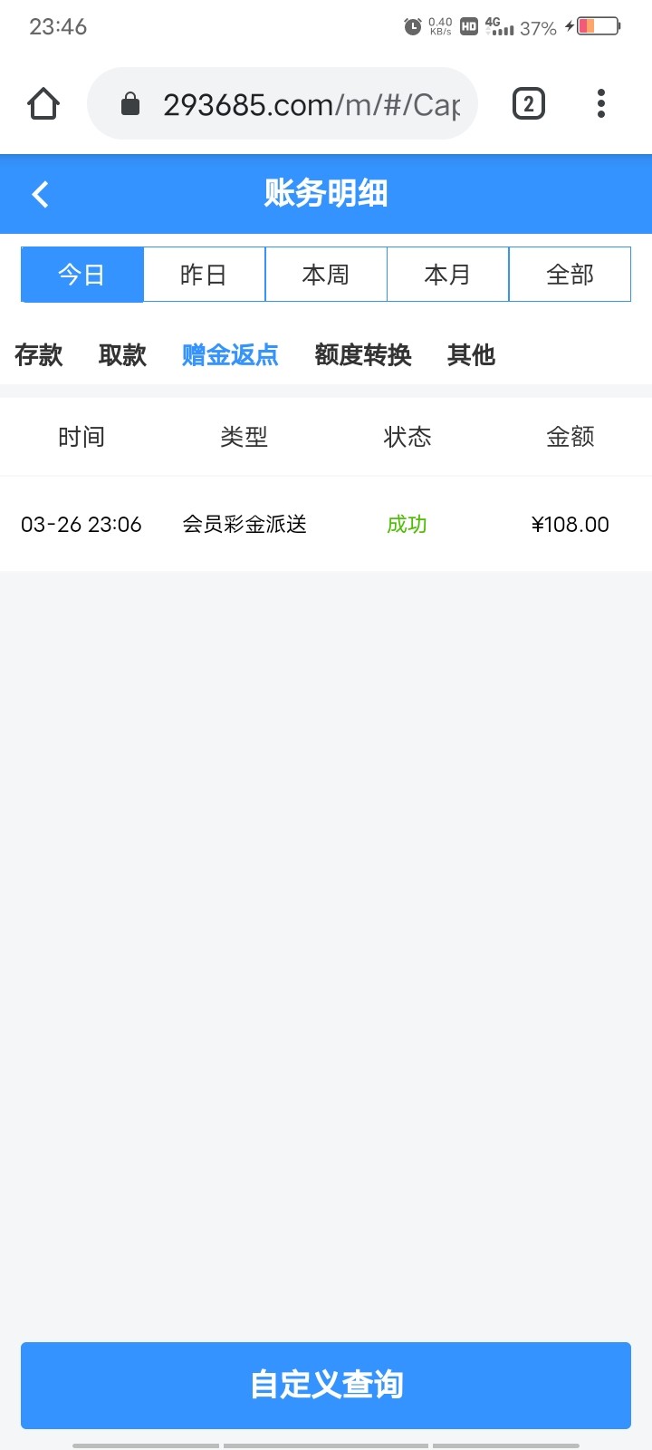 3 月 15 号注册的,今天进去发现有消息让我领神秘彩金,领了 108,就是没有绑定钱包送 88