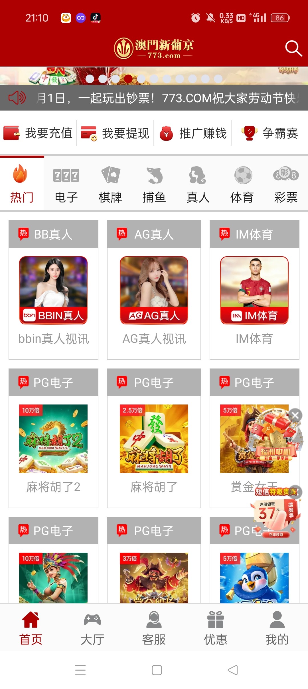 773特邀秒37元彩金