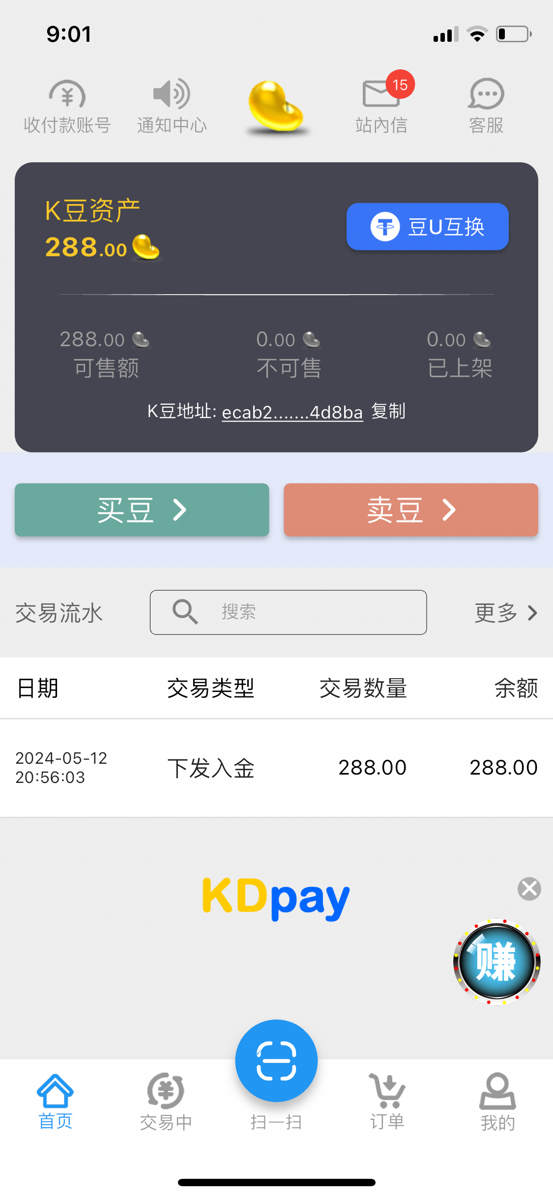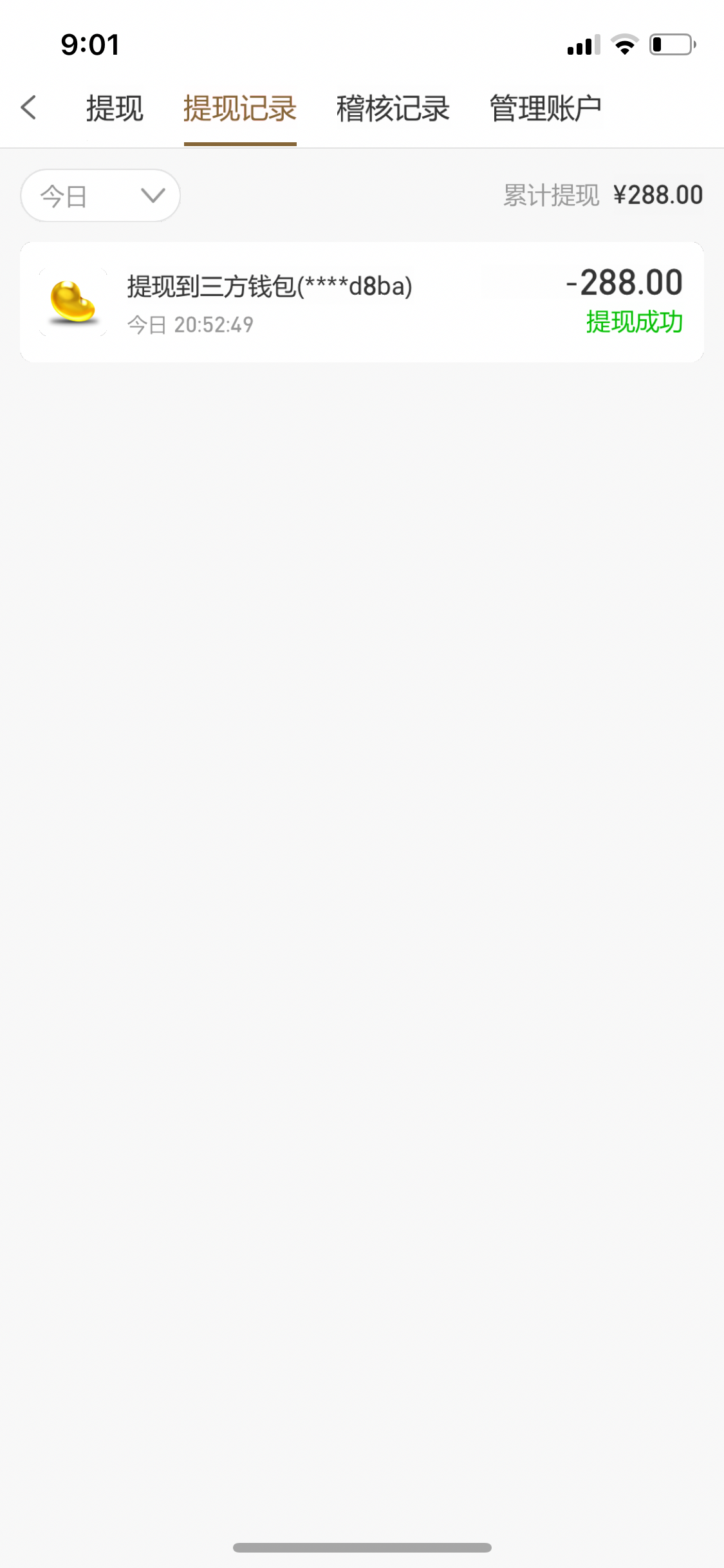 特邀送36 打了288出来已经到账